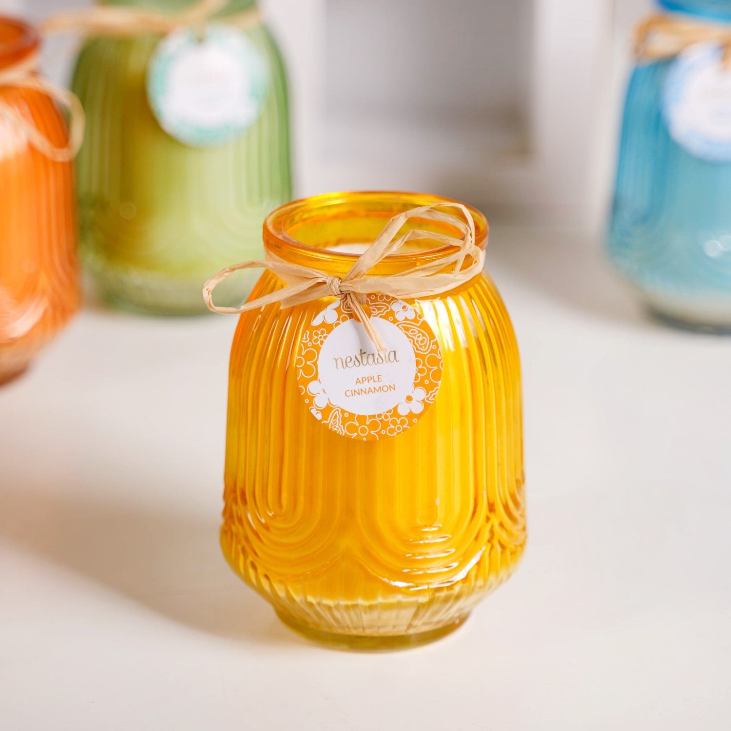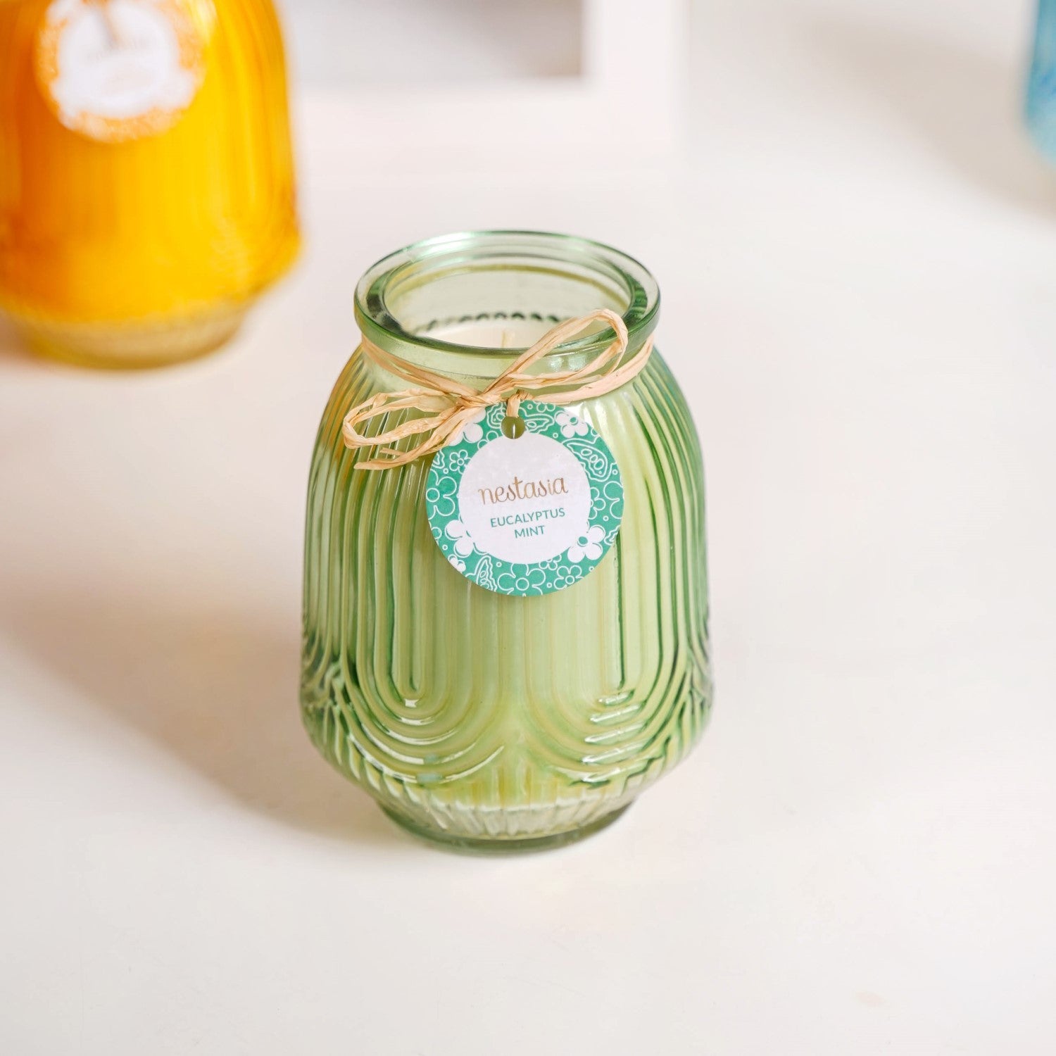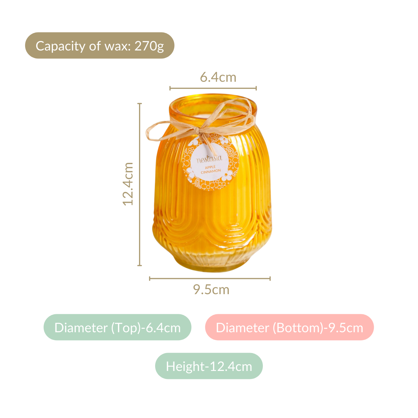 Design: Made from high-quality soda lime glass, each candle jar features an intricate embossed art deco pattern that adds a touch of elegance to any room. The soft, enchanting shades infuse a subtle pop of colour without overwhelming your space.
