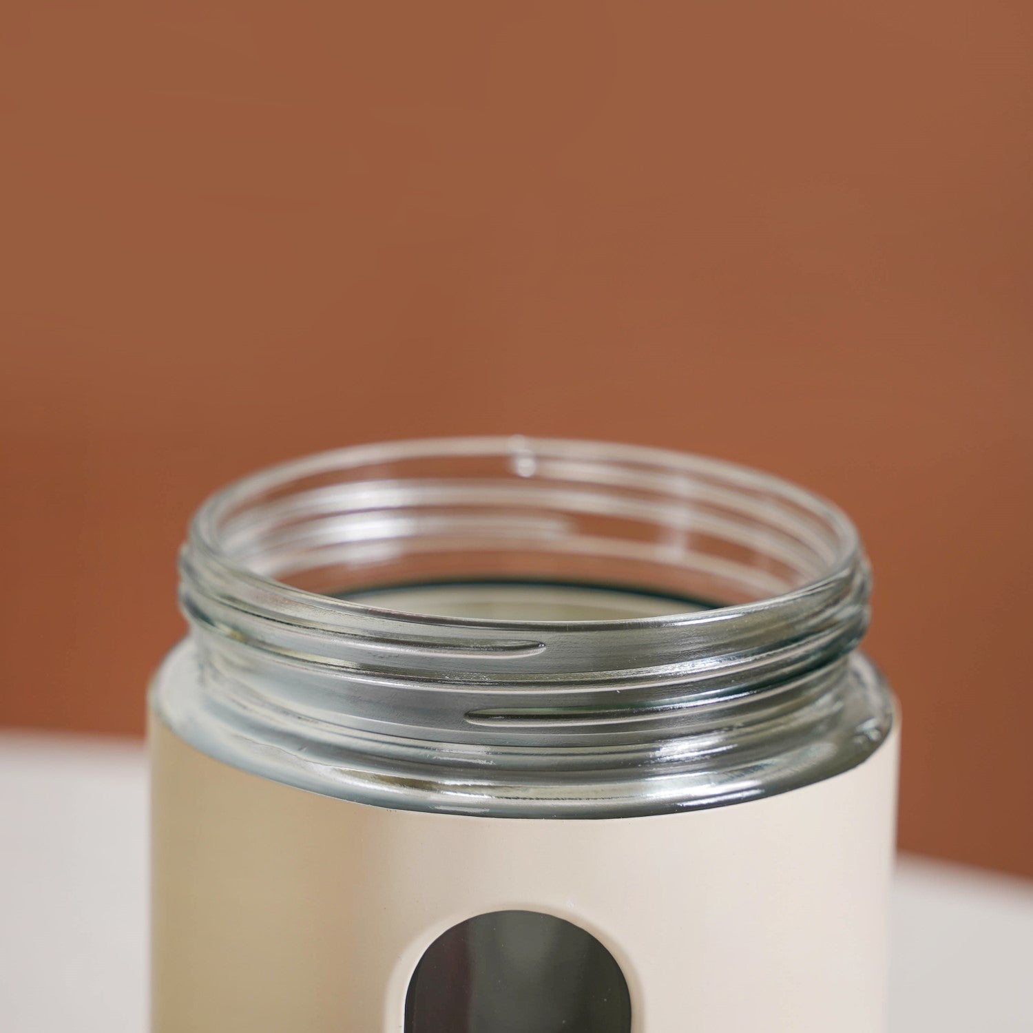 Design: Minimal and refined, this jar features a tall, cylindrical silhouette wrapped in a brushed metal casing that gives it a sleek, modern finish. A slim, vertical oval cut-out is positioned at the centre front, offering a subtle glimpse of the inner glass container. The lid is designed to mirror the same metallic texture, with a gently domed shape and smooth edges that create a cohesive and streamlined look. The combination of glass and metal gives this jar a clean, structured aesthetic that complements both modern and traditional interiors.