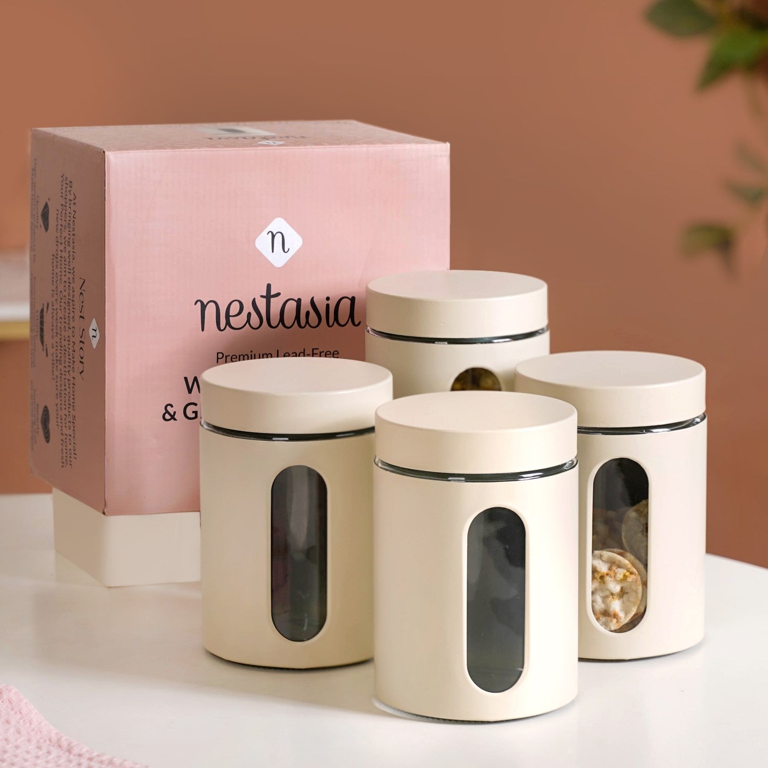 Set Of 4 Glass Storage Canister With Viewing Window 1200ml