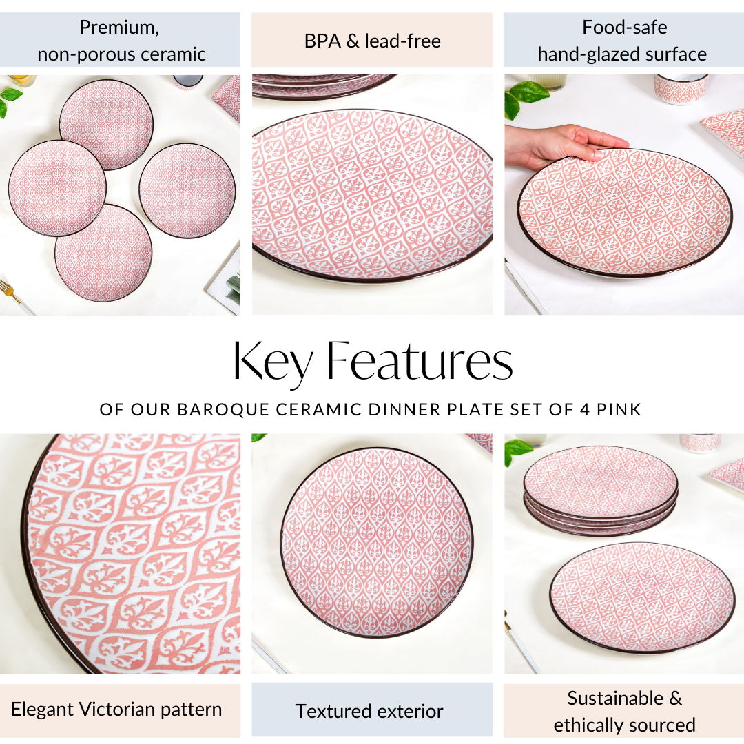 Set Of 4 Pink Baroque Ceramic Dinner Plate 11 Inch