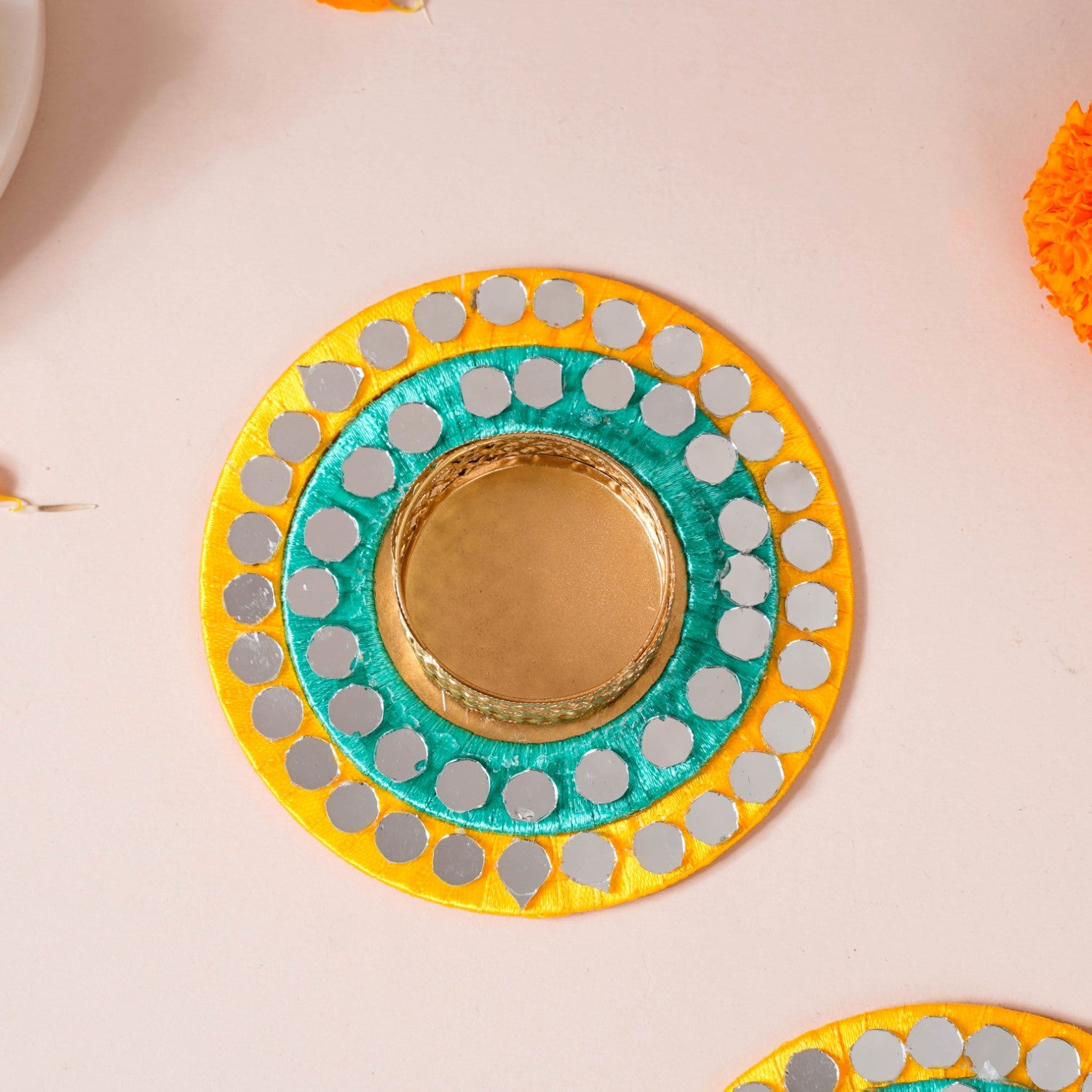 Broad circular base with mirrorwork