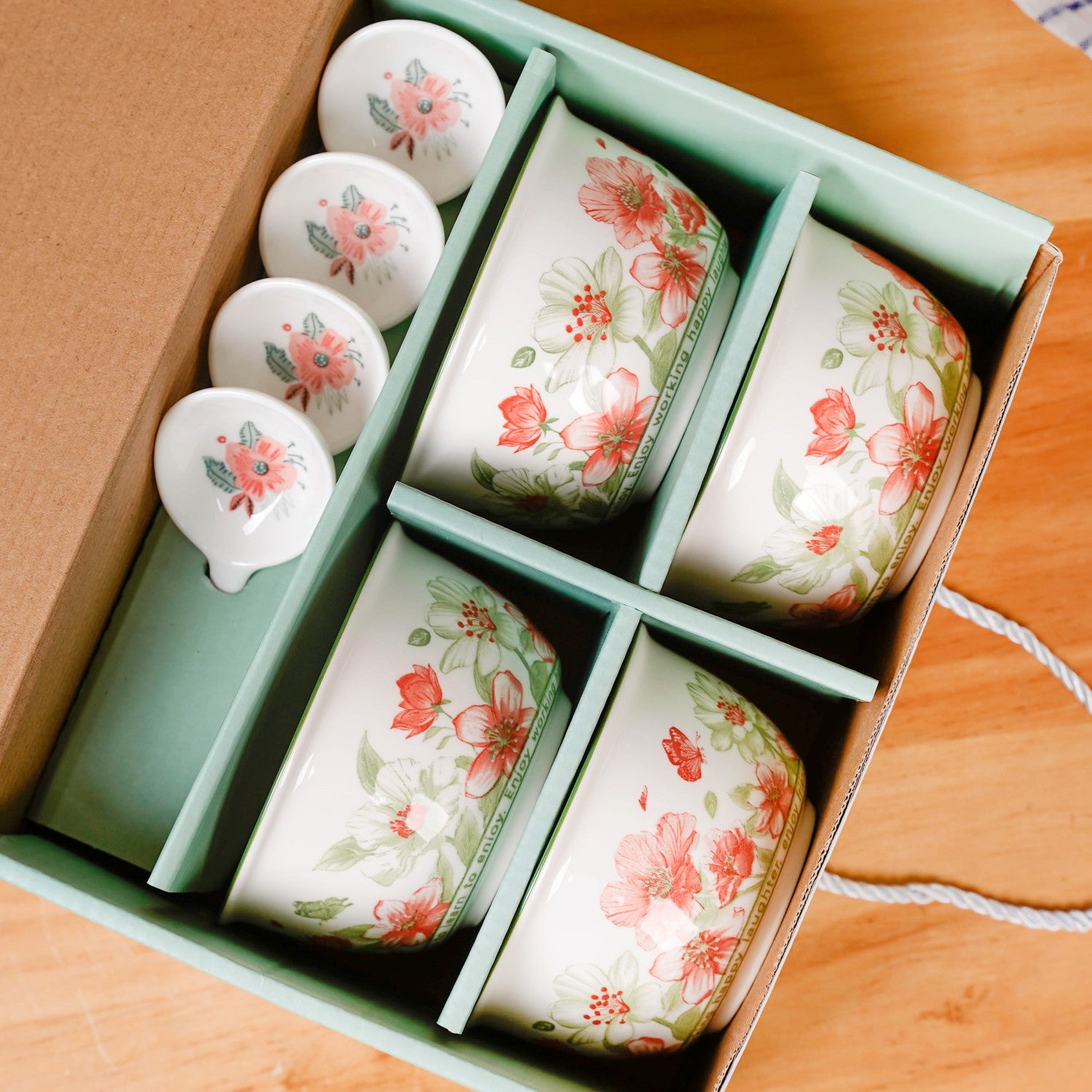 4 ceramic bowls 4 ceramic spoons