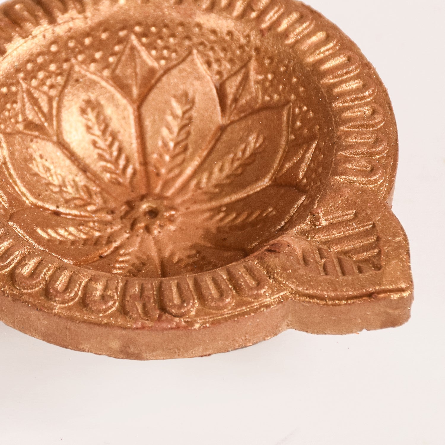 Benefits: Crafted from natural earthen clay, the diyas are 100% eco-friendly and sustainable. This makes them environmentally friendly accents for your home. The porous earthen clay allows the diyas to liberally soak up the lamp oil, ensuring a steady and extended burn time. The high-temperature firing renders excellent durability, allowing you to reuse them whenever necessary. The material also allows even heat distribution, keeping the tealights from suddenly cracking. Finally, the earthy shade, immaculate detailing, and seamless matte finish add to their allure.