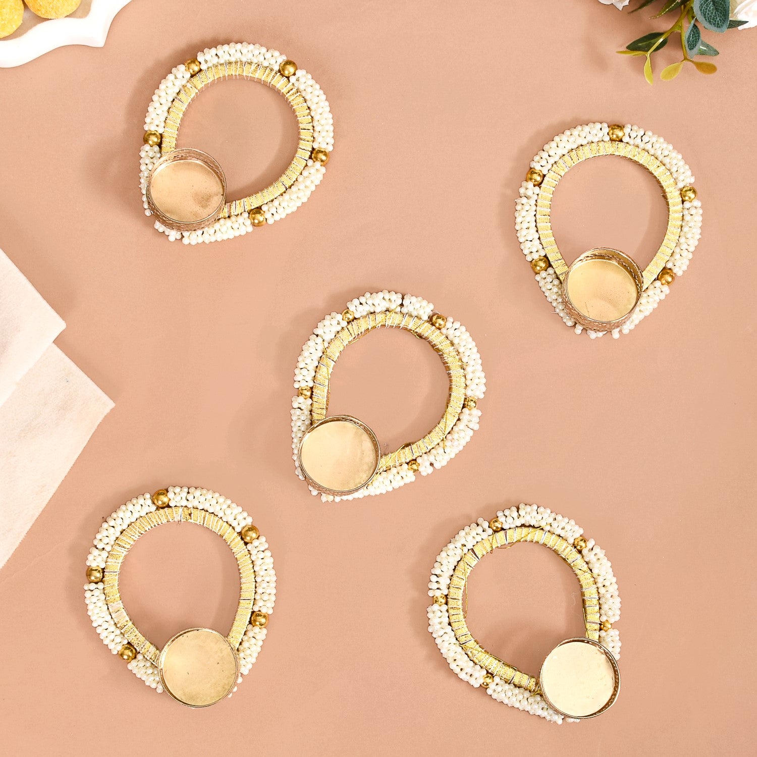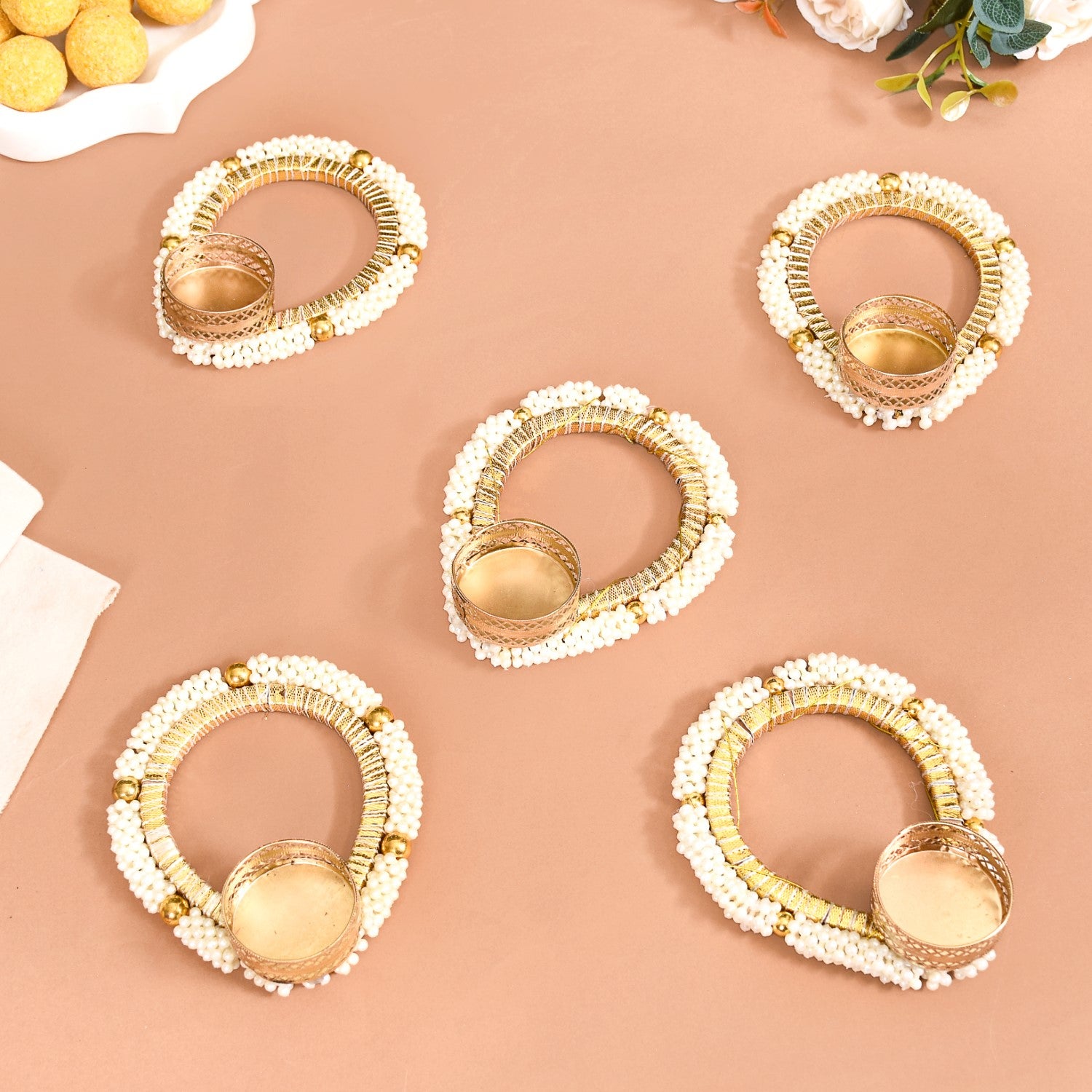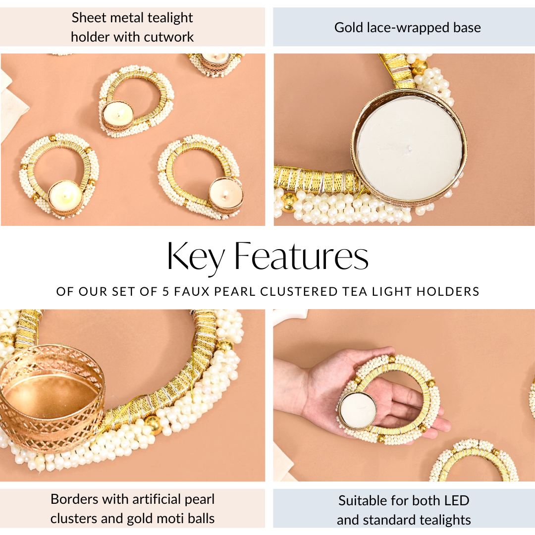Set Of 5 Faux Pearl Clustered Tea Light Holders