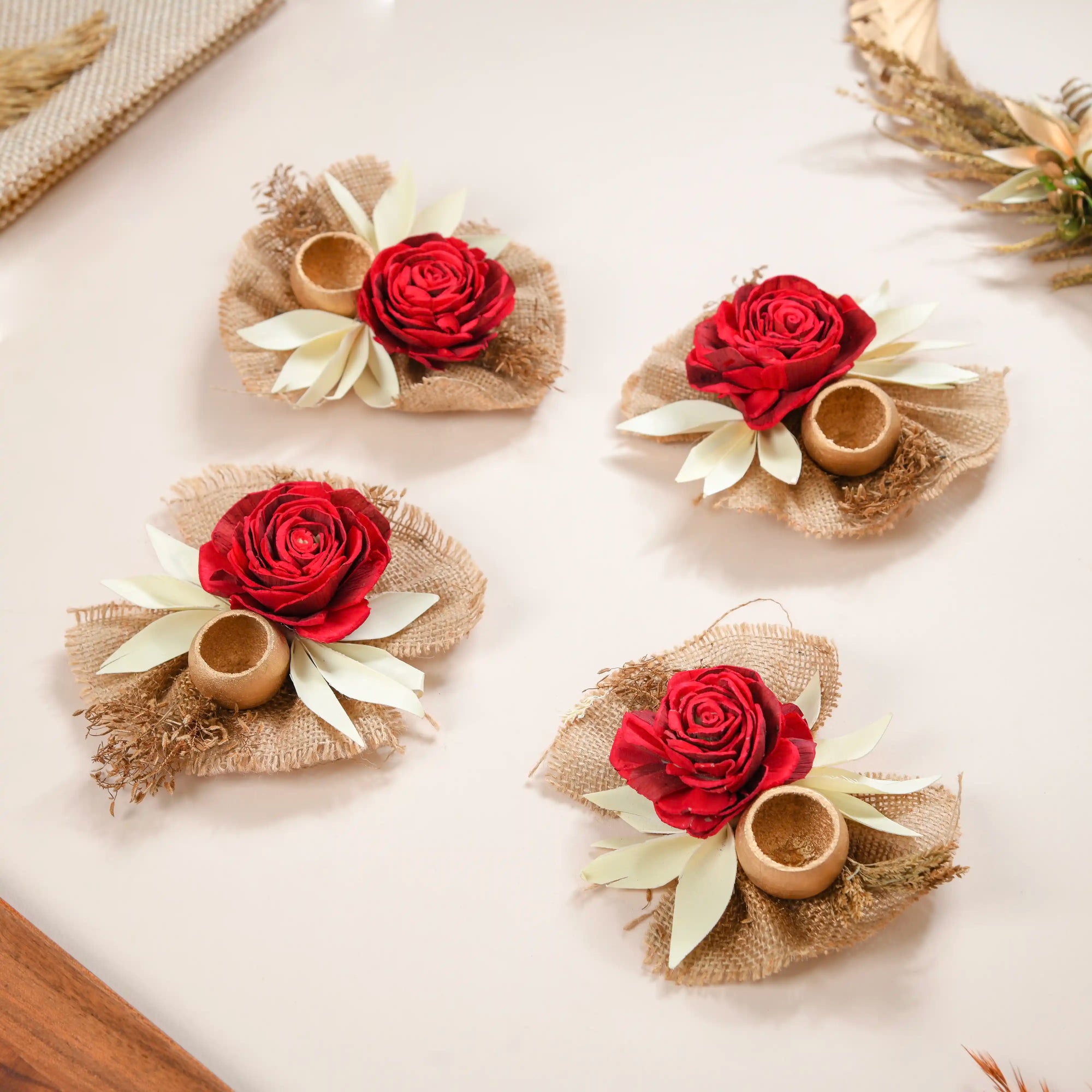 The decorative dried flowers do not have any special fragrance added to them. These flowers are decorative accents and are intended for visual purposes only. Their appeal lies primarily in their visual aesthetics and natural beauty. Their lack of scent makes them versatile, as you can incorporate them into your decor without concerns about clashing with other fragrances in your home.