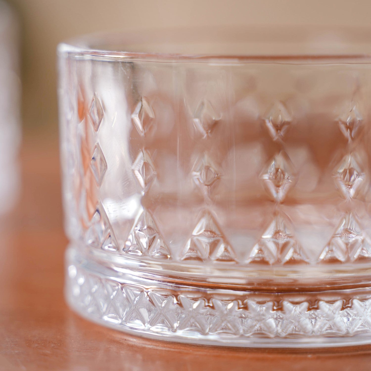 Design: Created with a luxurious diamond embossed pattern, these glass bowls shimmer beautifully under light and add a stunning visual appeal to your serving display. The intricate ridges offer a comfortable grip, while the sturdy base ensures stability. With their refined design, these bowls bring both charm and functionality to your table.