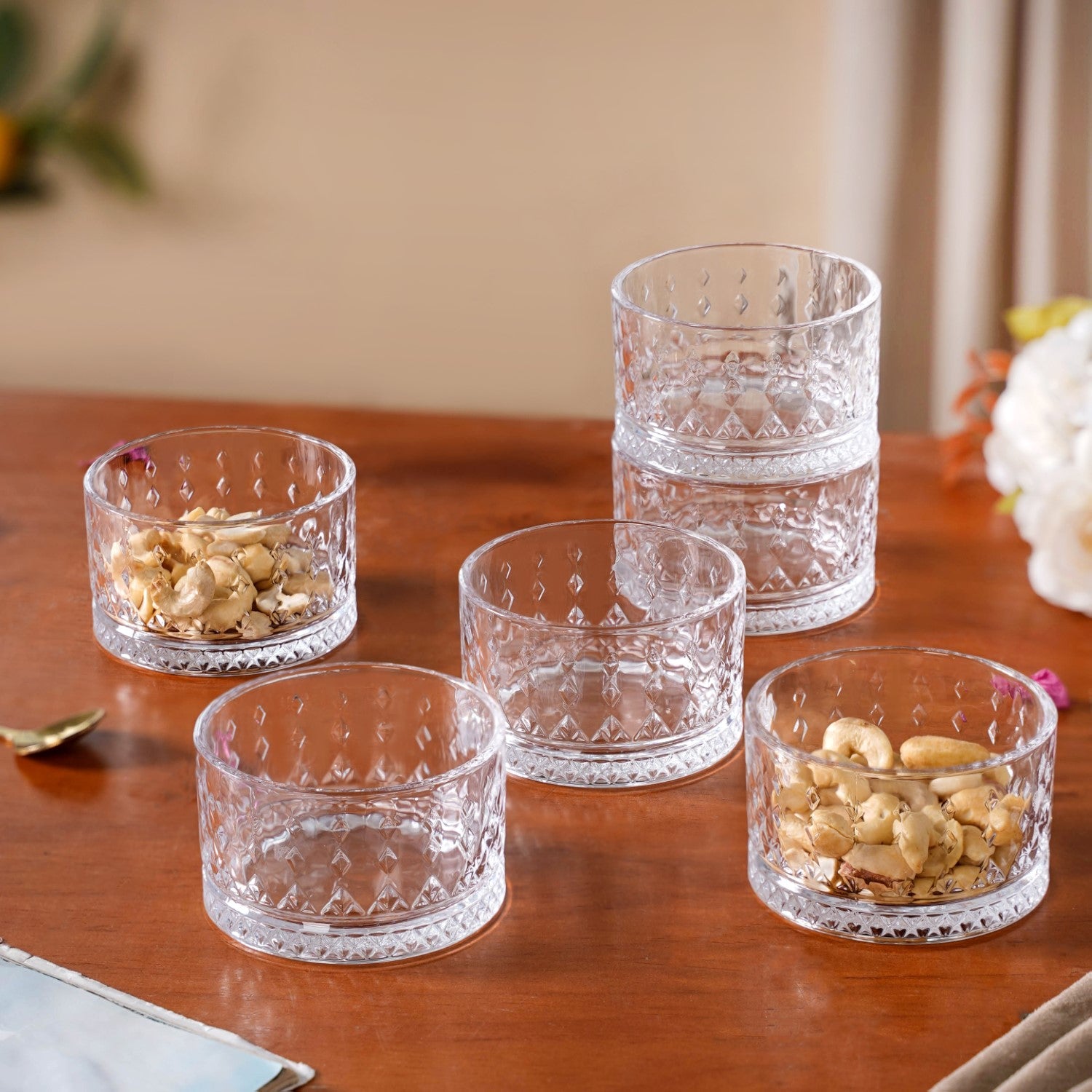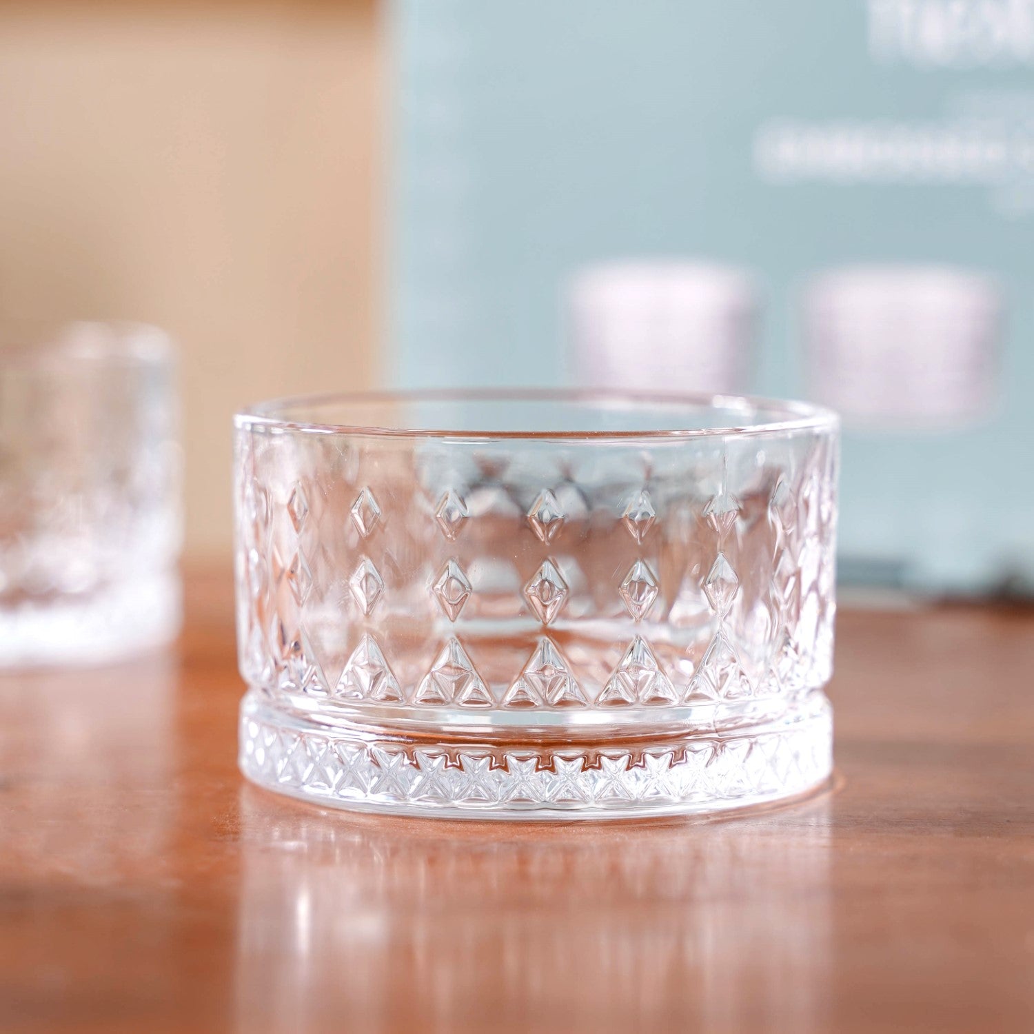 Set Of 6 Diamond Embossed Glass Snack Bowls 220ml