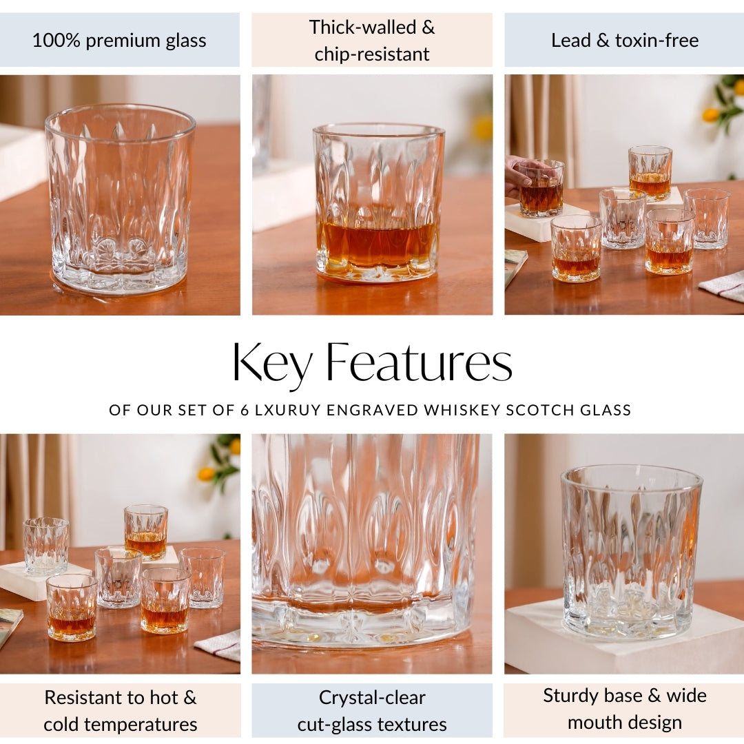 Set Of 6 Luxury Engraved Whiskey Scotch Glass 230ml