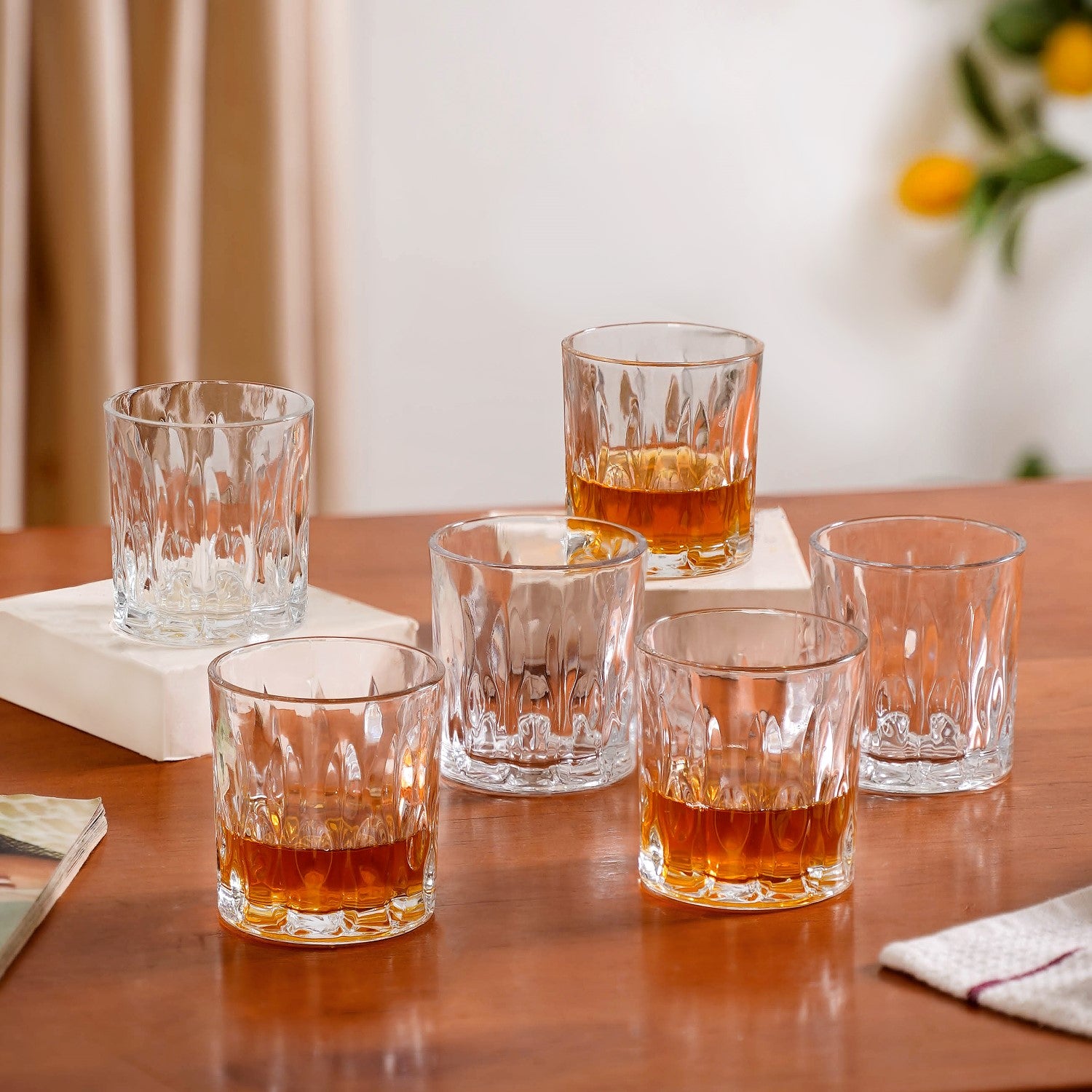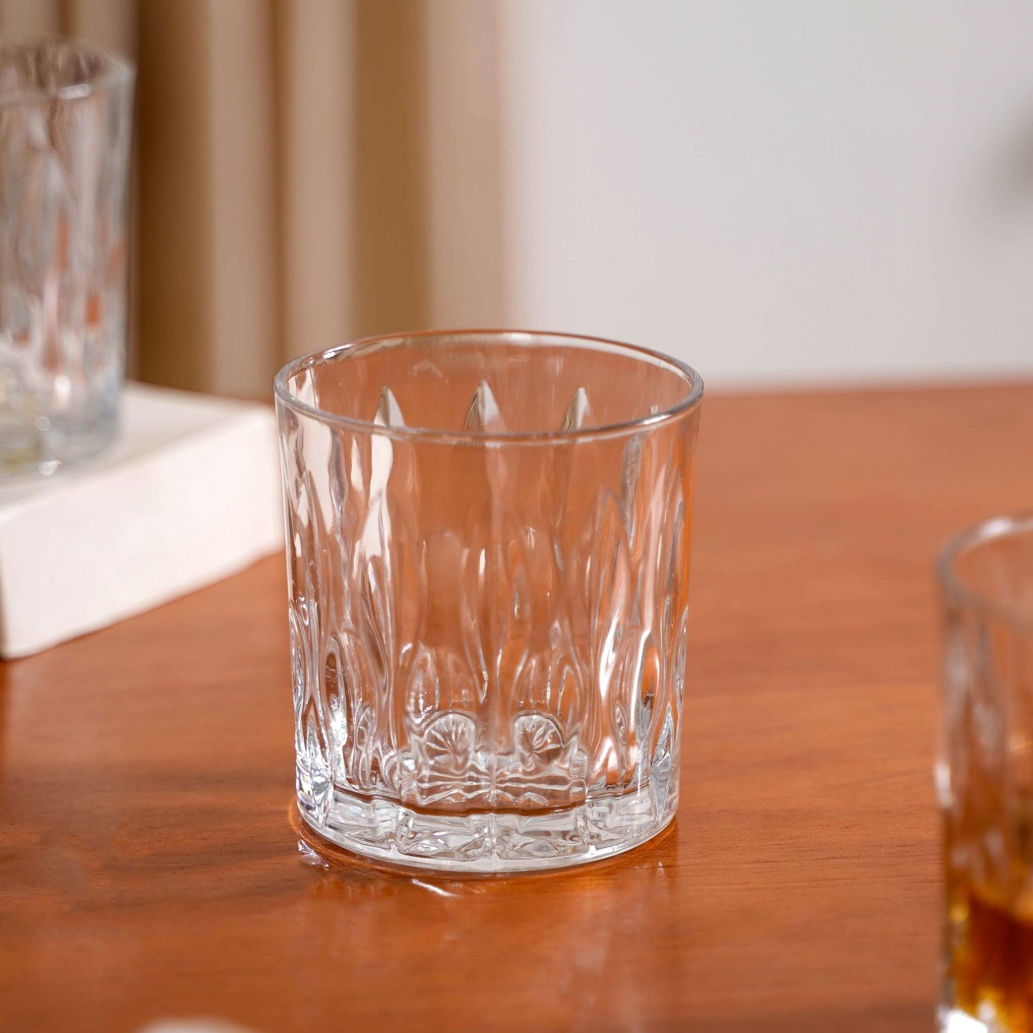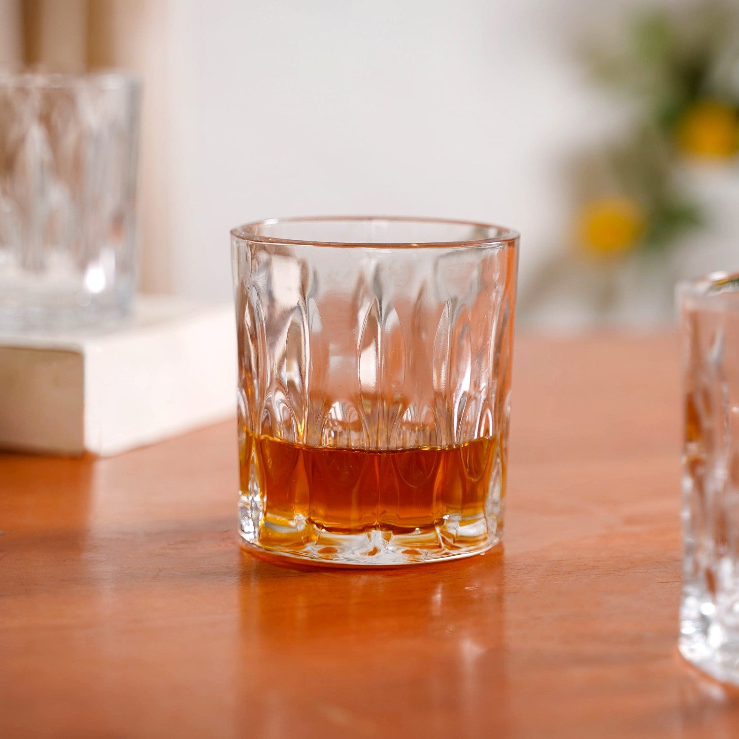 Design: Each whiskey glass in this set boasts a modern, sophisticated design. The sleek, embossed glassware adds a touch of luxury with its understated yet regal appeal. The gentle oval shapes around the glass provide a comfortable grip, allowing your fingers to nestle easily into place for a more enjoyable drinking experience. The design strikes the perfect balance between minimalism and refinement, making it suitable for any occasion.