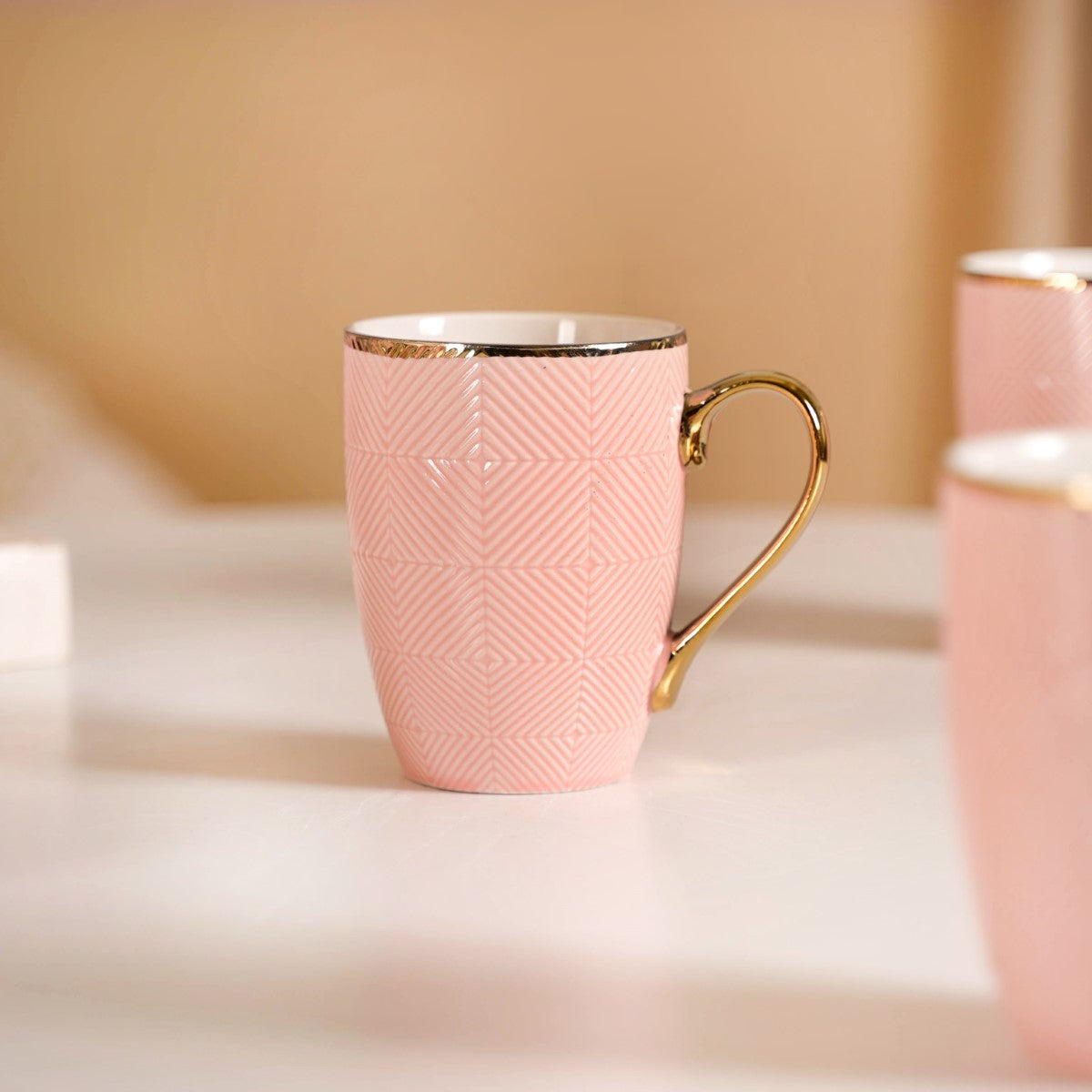 Dive deeper into the allure of our regal ceramic cup set. As you run your fingers along the intricate geometric patterns that adorn the exterior of these cups, you'll feel the meticulous craftsmanship that has gone into their creation. Each pattern is a testament to the dedication of our artisans, making these cups not just vessels for your beverages but pieces of art in their own right. From your morning coffee ritual to evening tea ceremonies, these versatile cups are ready to serve your favourite beverages.