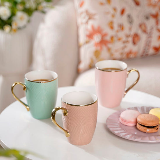 Set of 6 Pink Geometric Design Mug 330ml - Coffee mugs, coffee mug set, ceramic coffee mugs