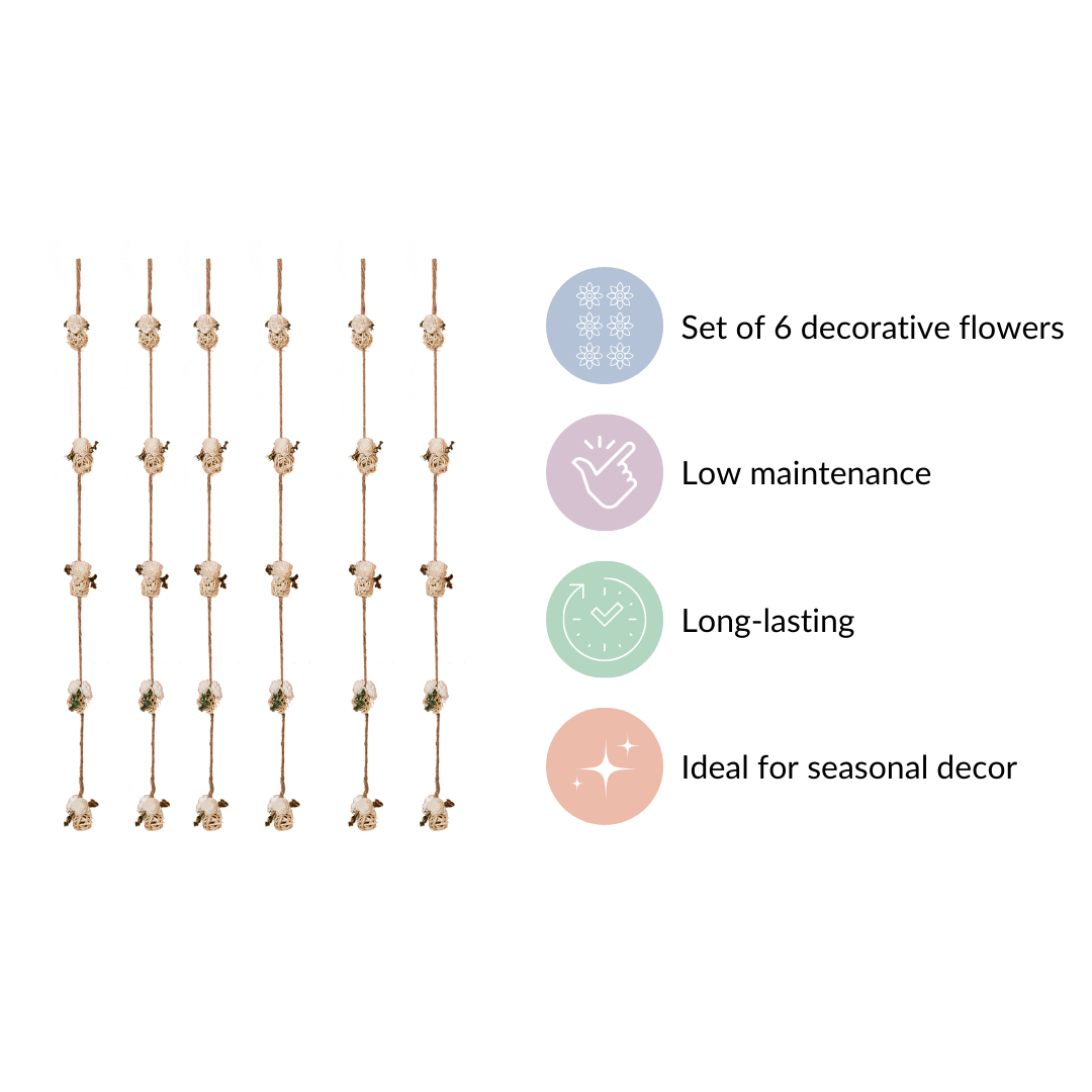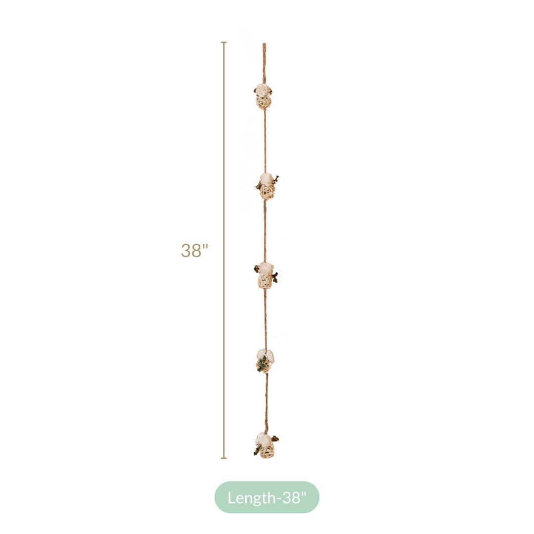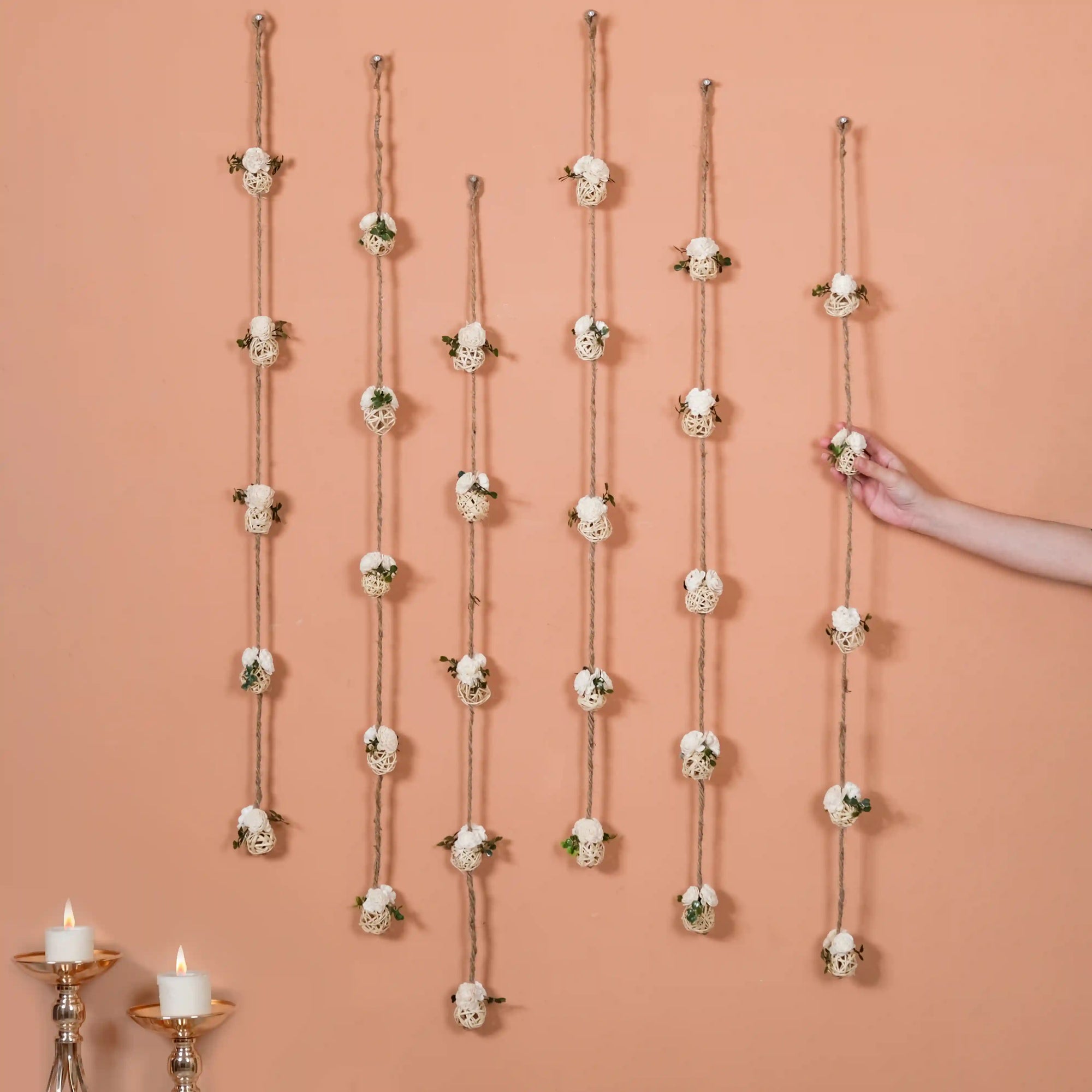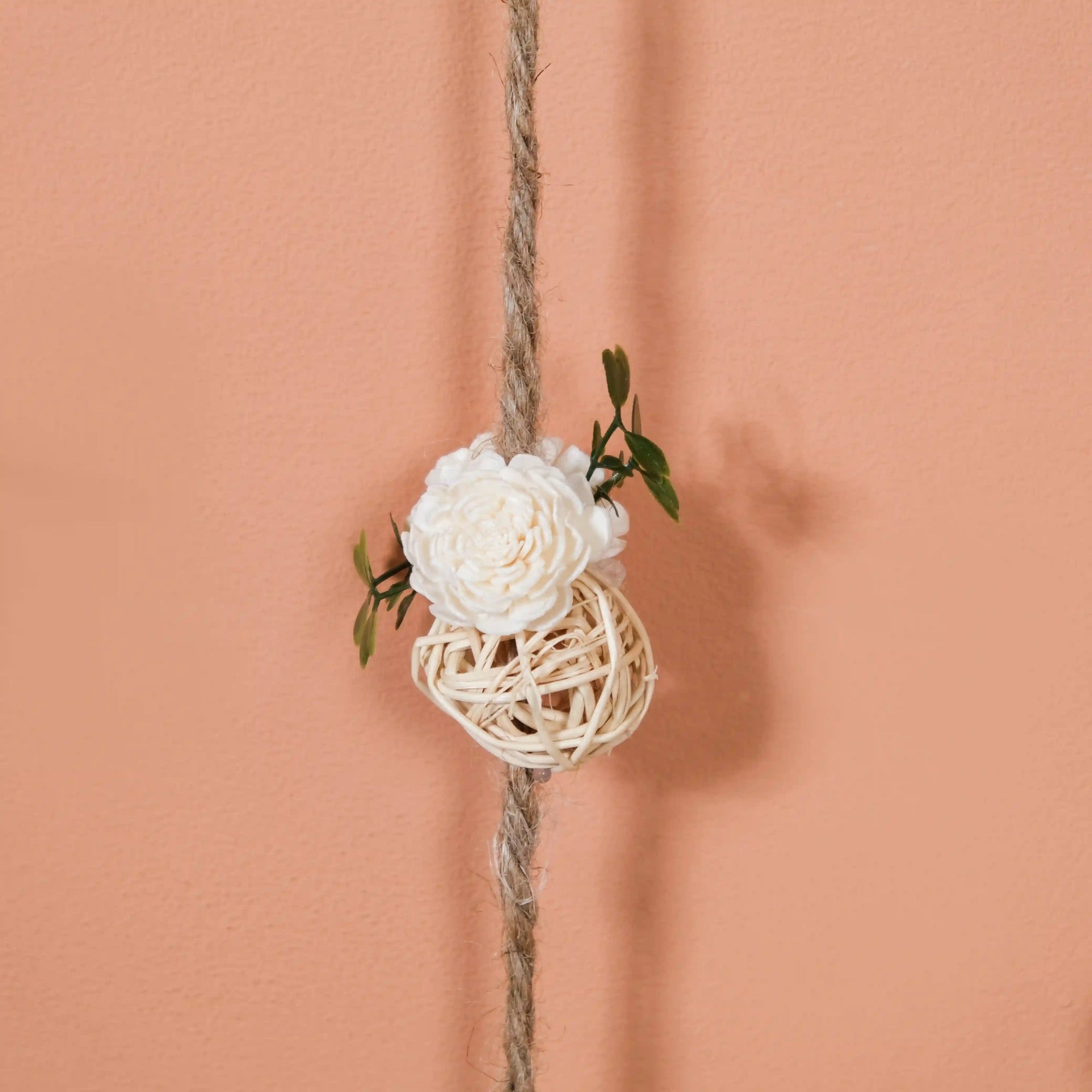 These wall hanging sets are intended especially for indoor use, where they may adorn your living area with their unmatched beauty and seasonal charm. They have been carefully designed for indoor situations with their delicate white shola pith blossoms, naturally dried organic materials, artistically entwined green foliage, and rattan balls. To utilize them outdoors, though, you can place them on display in covered outdoor areas like a screened porch or veranda.
