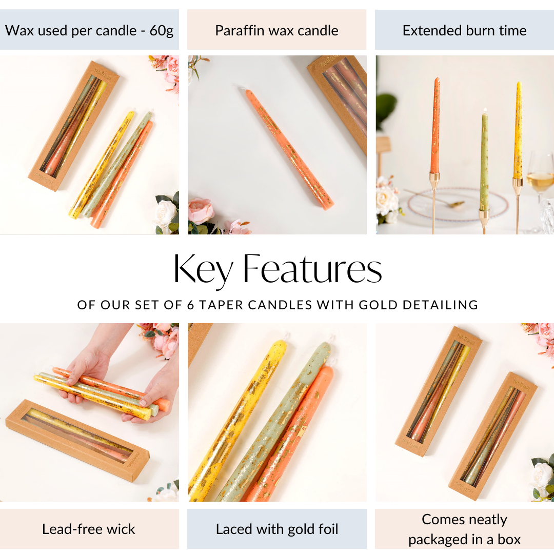 Certainly! These gold foiled taper candles are quite elegant and versatile, making them perfect for gifting on various occasions such as housewarmings, anniversaries, and other festivities.