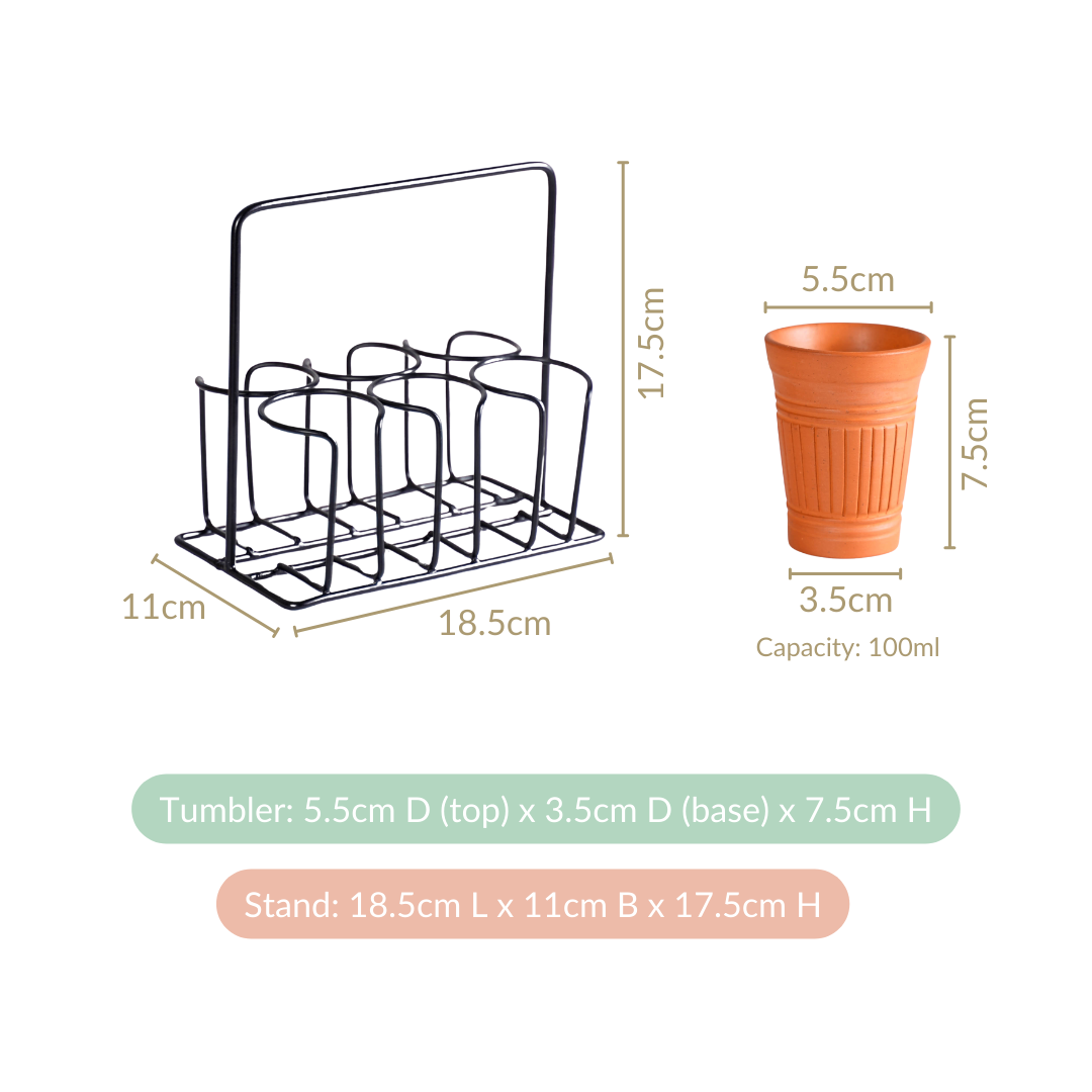 The wrought iron metal stand is durable and rust-resistant, providing stable support for the terracotta tumblers. You can trust it to keep your tumblers safe and accessible.
