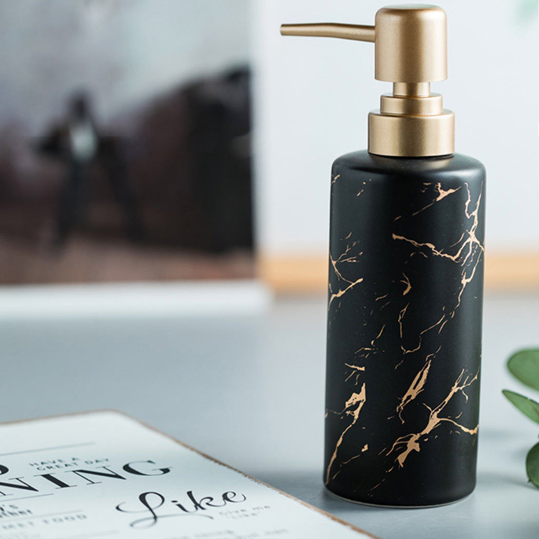 Shampoo dispenser bottles are ceramic bottles that come with pumps for a clean, organised, and hygienic bathroom. The bottles are capable of being used as shampoo dispensers, hand wash dispensers, and liquid soap dispensers in kitchen as well. They can be paired together with shampoo dispensers of the similar pattern to create a set.