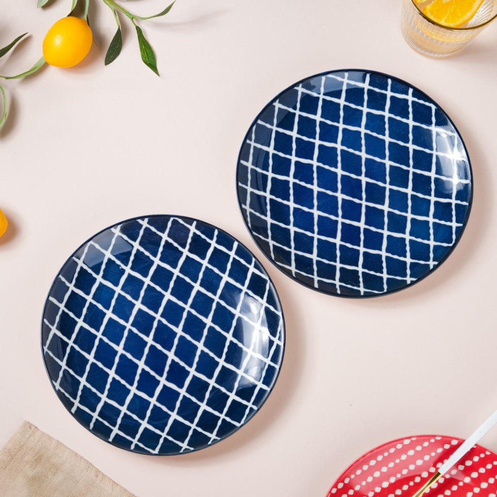 Shibori Chequered Starter Plate Blue 7.5 Inch Set Of 2