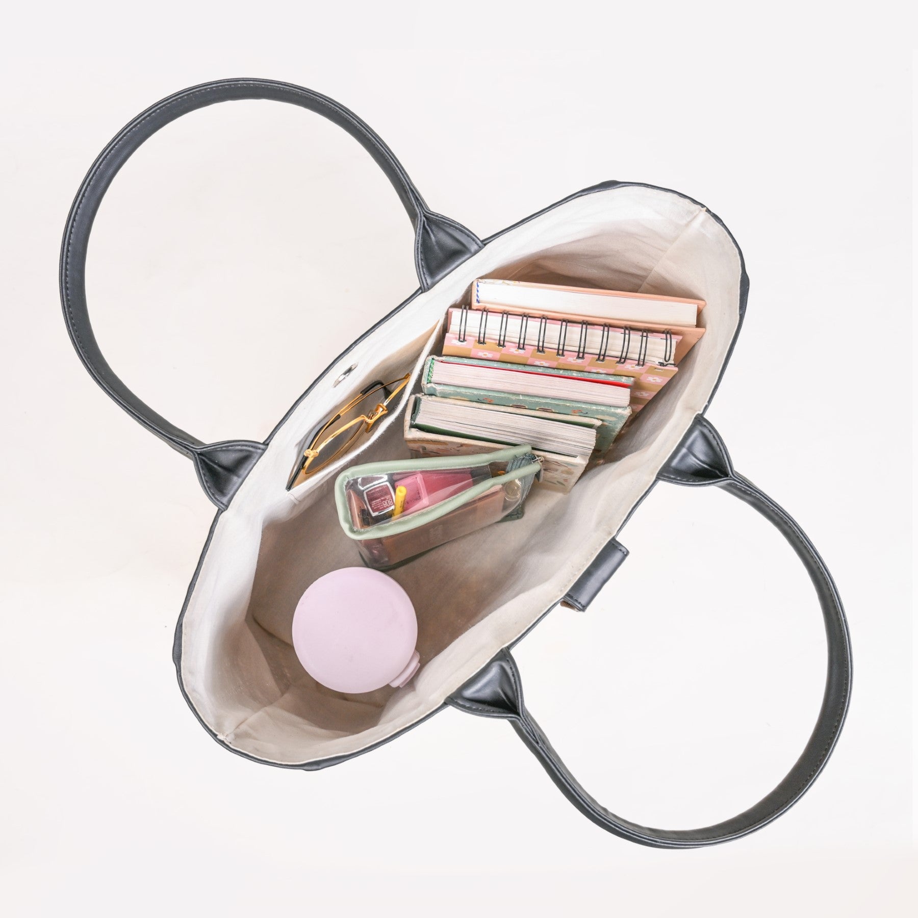 Benefits: Crafted with both style and responsibility in mind, this eco-friendly bag features a durable Shitalpati body reinforced by robust vegan leather trims, offering both exceptional resilience and an animal-free alternative. Its generous interior ensures ample space for all your essentials, secured with a seamless metal clasp for peace of mind. The soft cotton inner lining cradles your belongings, while the twin top handles guarantee comfortable carrying all day long. A dedicated main compartment and an internal pocket provide intuitive organisation, making this an effortlessly practical option for any occasion.