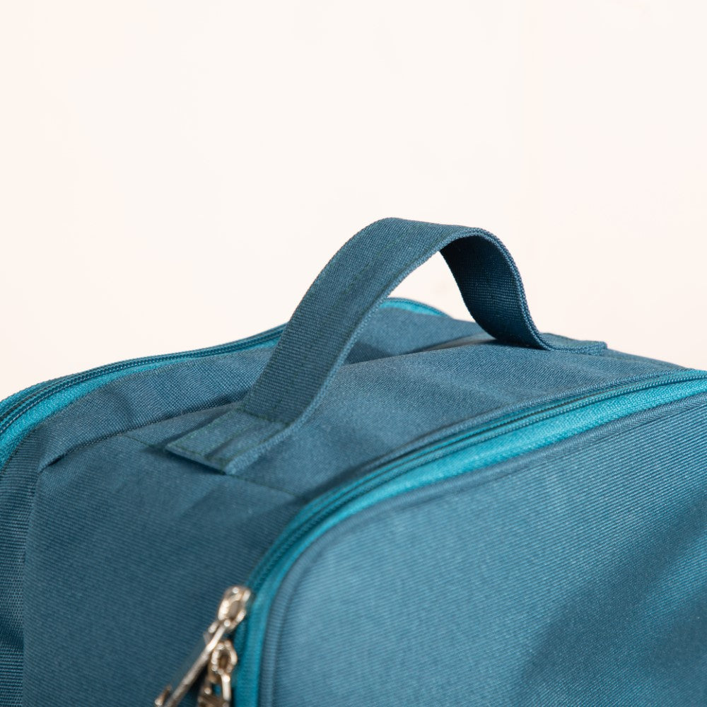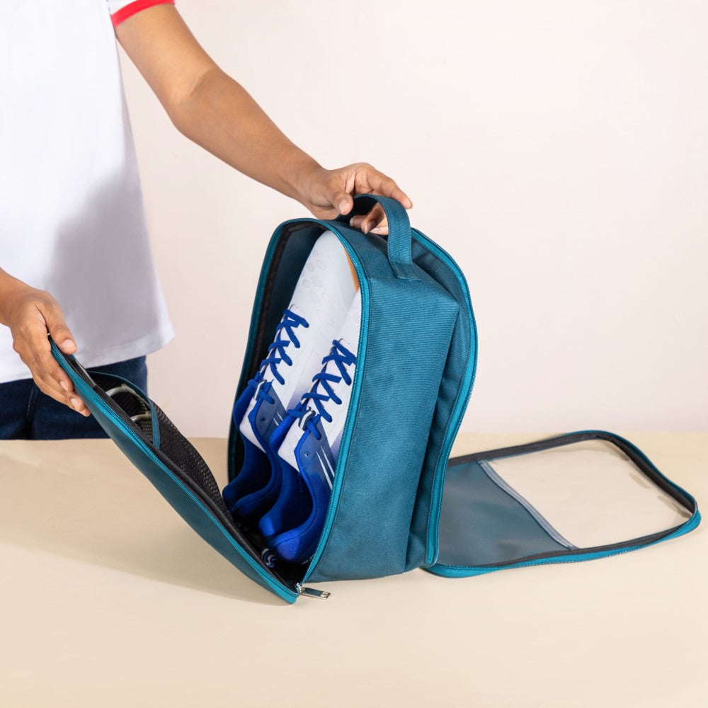 The high-quality shoe storage bag or shoe organizer is the perfect accessory for keeping your shoes organized and protected from dust. This stylish organizer bag features a convenient zipper enclosure that keeps your shoes securely in place, while the transparent design makes it easy to quickly identify the shoe that are in the bag. The waterproof shoe bag has multiple zipper compartments, the front narrower compartment is ideal for keeping thinner sandals, slippers, and socks, while the deeper compartment is spacious enough for keeping sneakers and heels. The inner netted pocket can be used for keeping shoe horns, shoe polish or extra shoe laces. The teal-coloured shoe storage bag has a top handle that makes it easy to carry the shoe bag around or hang the organizer bag up in your closet. The storage bag is ideal for frequent travellers or those who simply want to keep their shoes neatly stored. The shoe bag can fit a variety of shoe sizes and styles, from sandals to heels to sneakers. Additionally, the bag organizer can be used to store your shoes in your closet or under your bed, helping to save space and keeping your shoes safe from dust and damage.