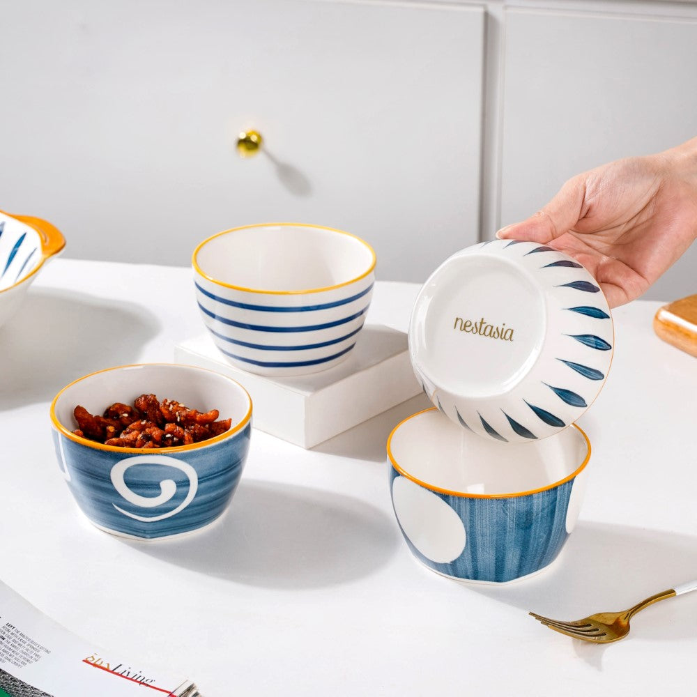 Crafted with premium ceramic material, our Nitori side bowls feature gorgeous artistic designs. Serve up fries, dumplings, and other snacks in these versatile side bowls your make snack time extra special. Complete your dining spread by pairing them with our side plates and dinner plates from the Nitori collection. Impress your guests with an exquisite dinner arrangement that showcases your attention to detail and style. These side bowls are not only functional but also serve as captivating centrepieces, adding a touch of elegance to any table setting. Snack in style with our Nitori Side Bowl Collection and enjoy every bite of your favourite treats in the most delightful way possible.