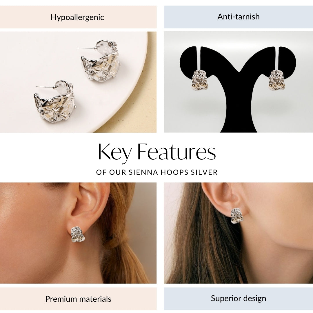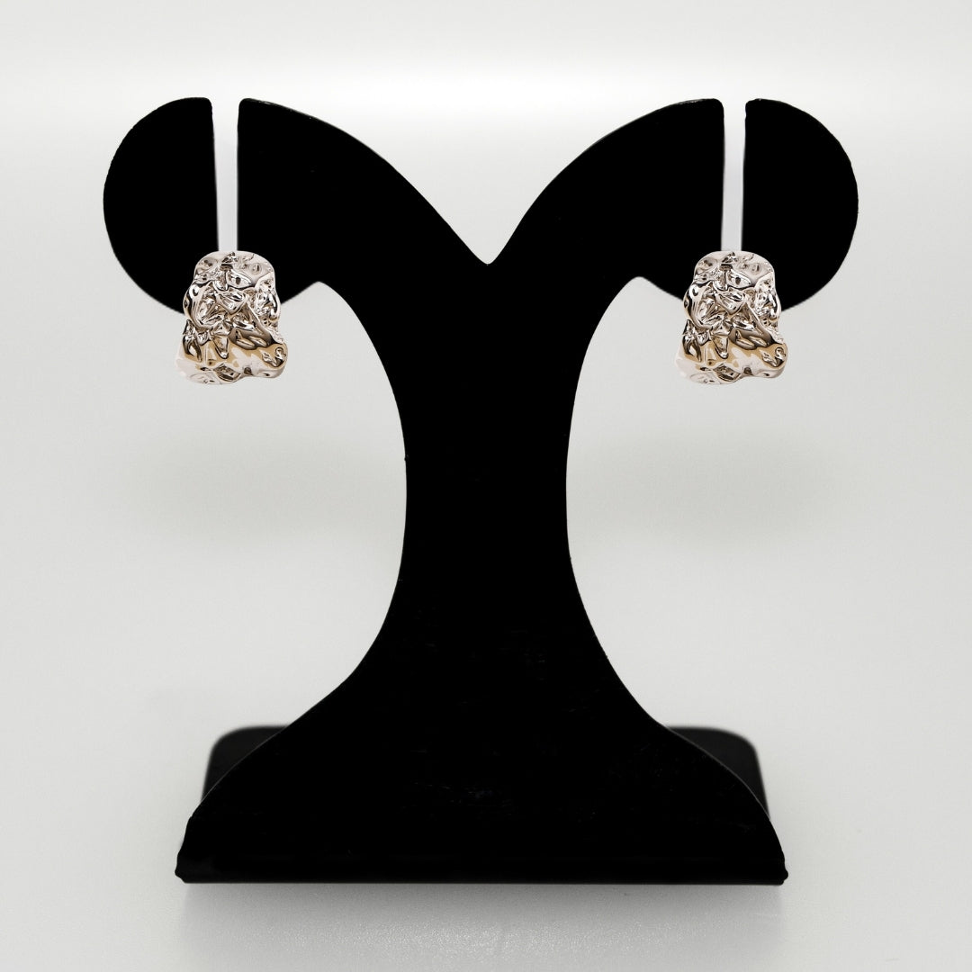 A deeply poetic translation of the natural world, these J hoop earrings are sculptural, organic, and irresistibly sensual. Inspired by the textures of nature, specifically stone, they feature a silver hue paired with a hammered, stone-like texture, evoking the raw beauty of natural elements. The striking combination of colour and texture creates a captivating piece that effortlessly elevates any look.