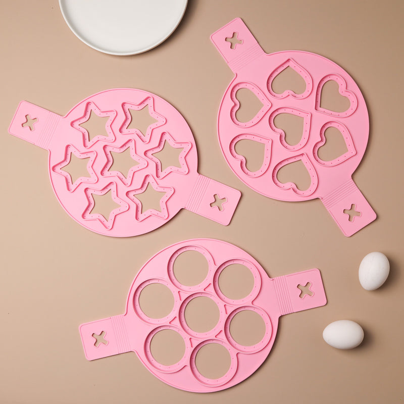 The egg mould is made of silicone and is pink in colour. The egg mould comes in three shape variants - stars, circles, and hearts. The silicone material makes the mould non-toxic and entirely fun to use. It can be used not only for eggs but for any sort of pancakes, mini dosa and other sweet & savoury batters to give it an interesting shape.