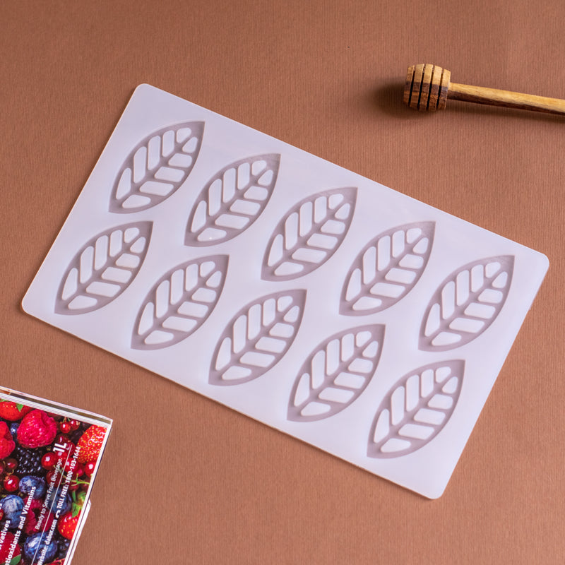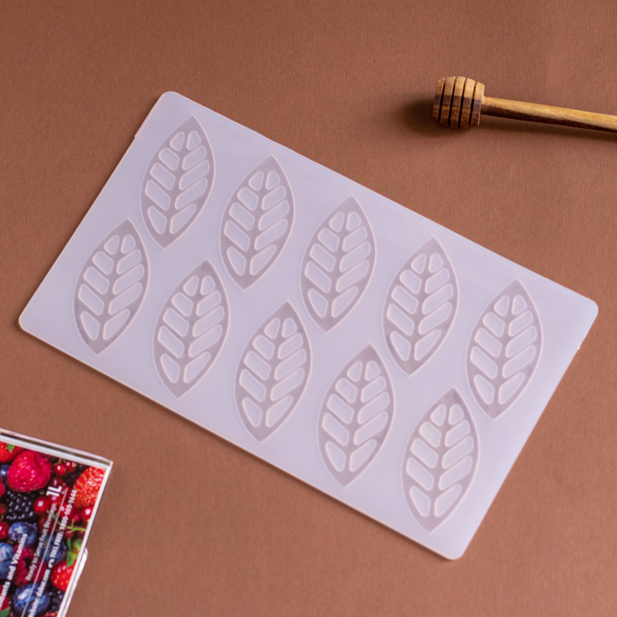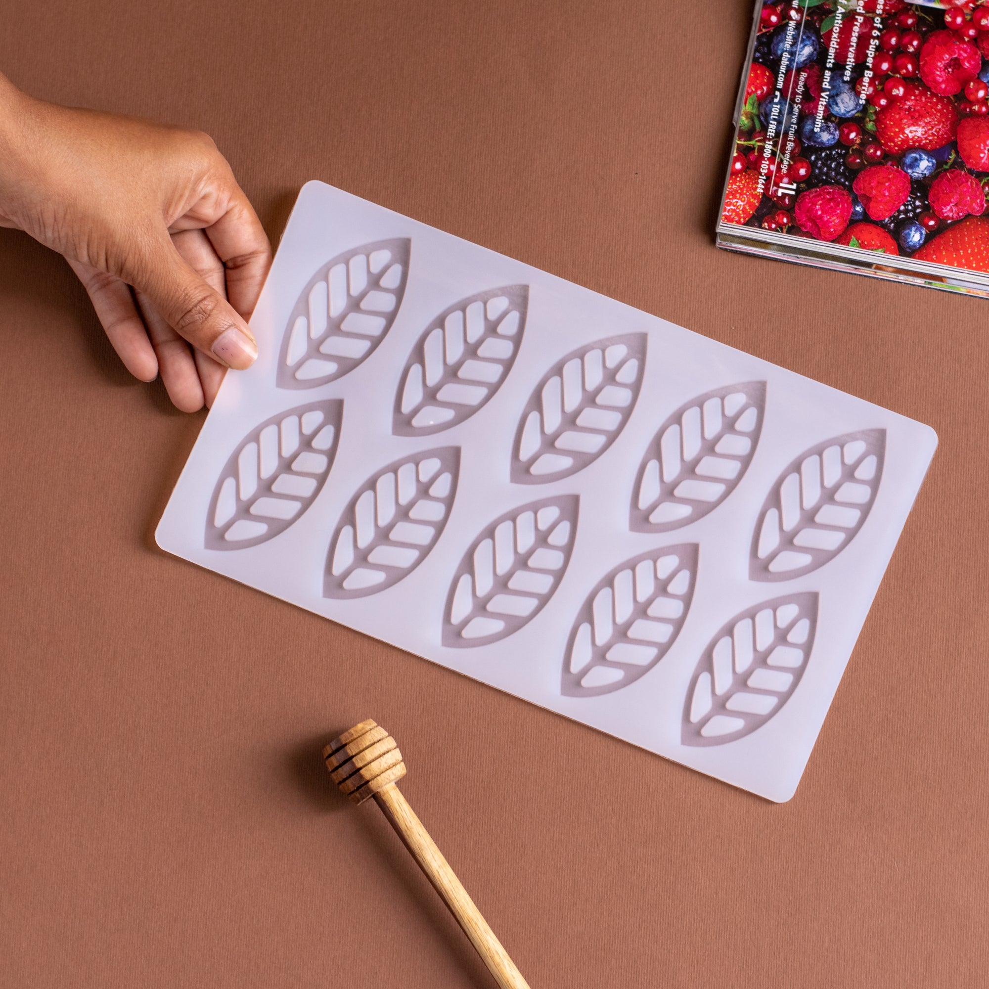 Leaf shaped silicone mold that makes the perfect leaf shaped chocolates. Pour in different types of dark chocolate, milk chocolate or chocolate pastilles and allow it to cool and freeze. The tropical leaf silicone mold can also make some great fondants that can be used to garnish cakes and cupcakes. The chocolate bars made out of the silicone molds can also be used as cake toppers. The leaf silicone mats are food quality, safe for baking and freezing.