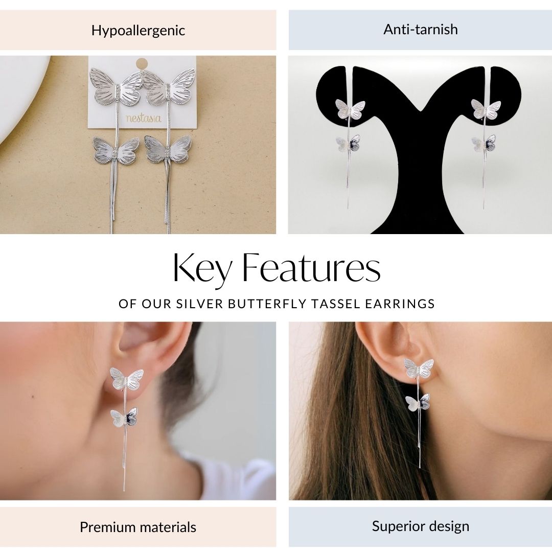 Nestyle: Pair these butterfly tassel earrings with a soft pastel blouse and high-waisted jeans for a fresh, airy vibe. A loose bun or flowing hair will enhance the whimsical feel.