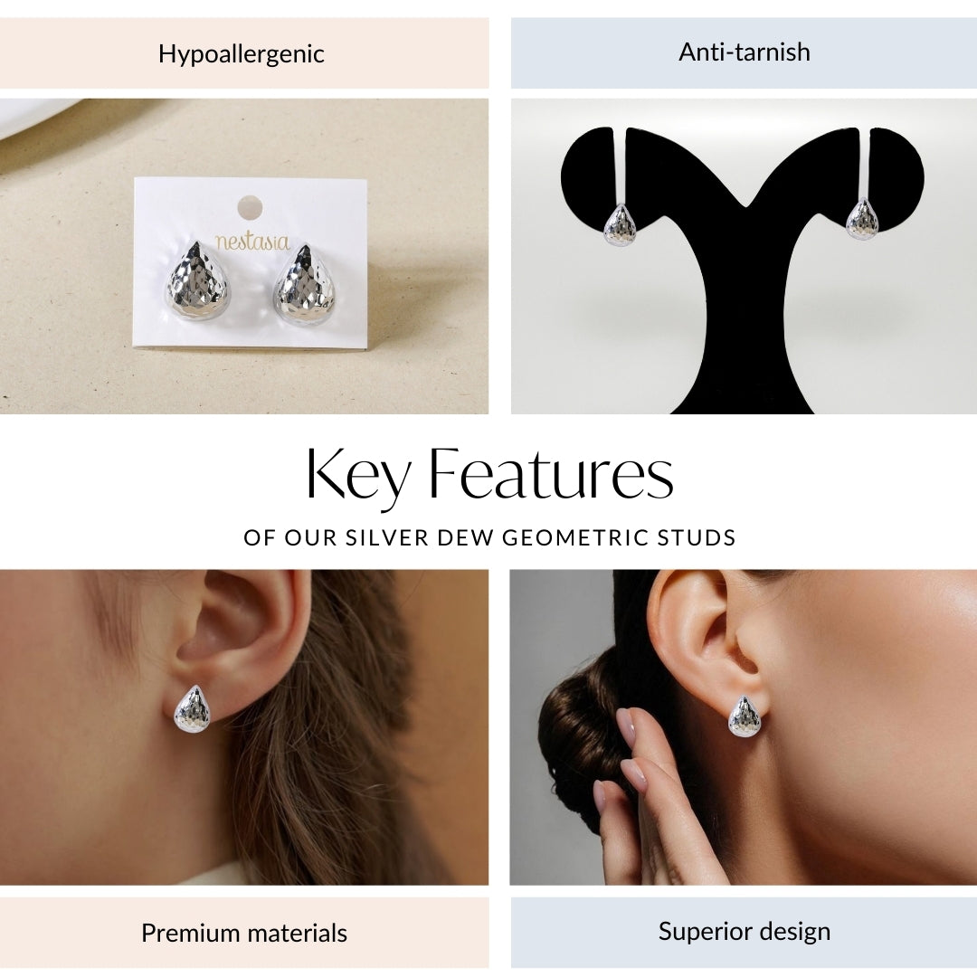 Silver Dew Geometric Studs