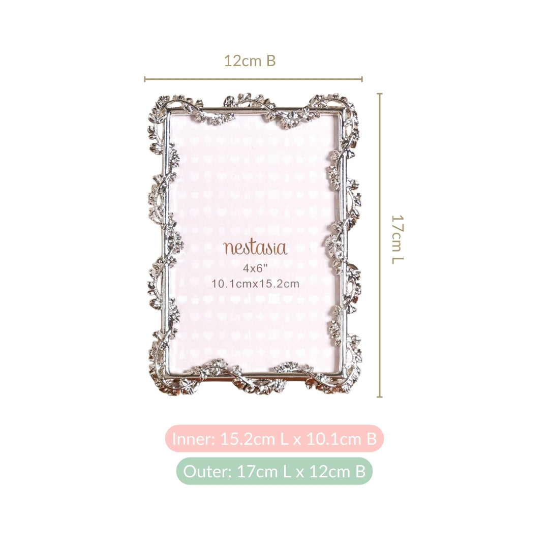 Benefits: The detailed vine design adds a graceful, organic element that enhances both modern and traditional décor. Two hooks allow you to hang the frame horizontally or vertically, while the sturdy easel stand with satin rope ensures stable tabletop placement. The velvet backing provides a soft, protective layer, keeping your photo scratch-free and perfectly in place.