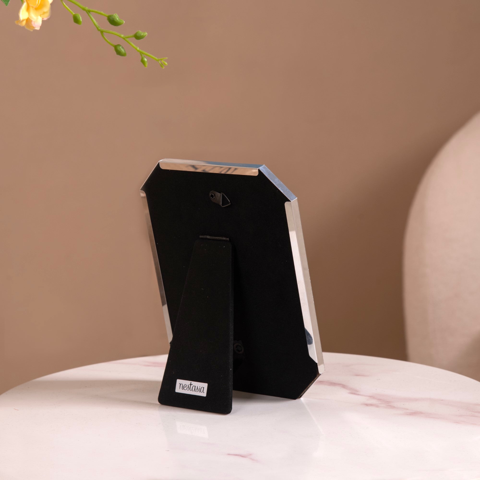 Elevate your cherished memories with this exquisite set of 2 photo frames featuring premium-quality materials and an elegant design. Crafted with a blend of durable aluminium and resin, these picture frames are not only sturdy but also resistant to rust, ensuring your photos remain in pristine condition. The high-sheen gloss finish and silver rim detailing add a touch of sophistication, while the octagonal shape lends a unique flair. Whether displayed on a desk or shelf with a sturdy easel stand or hung on the wall using the back hook, these metal photo frames are perfect for showcasing your favourite moments. An ideal gift for loved ones, these frames are both beautiful and easy to maintain.