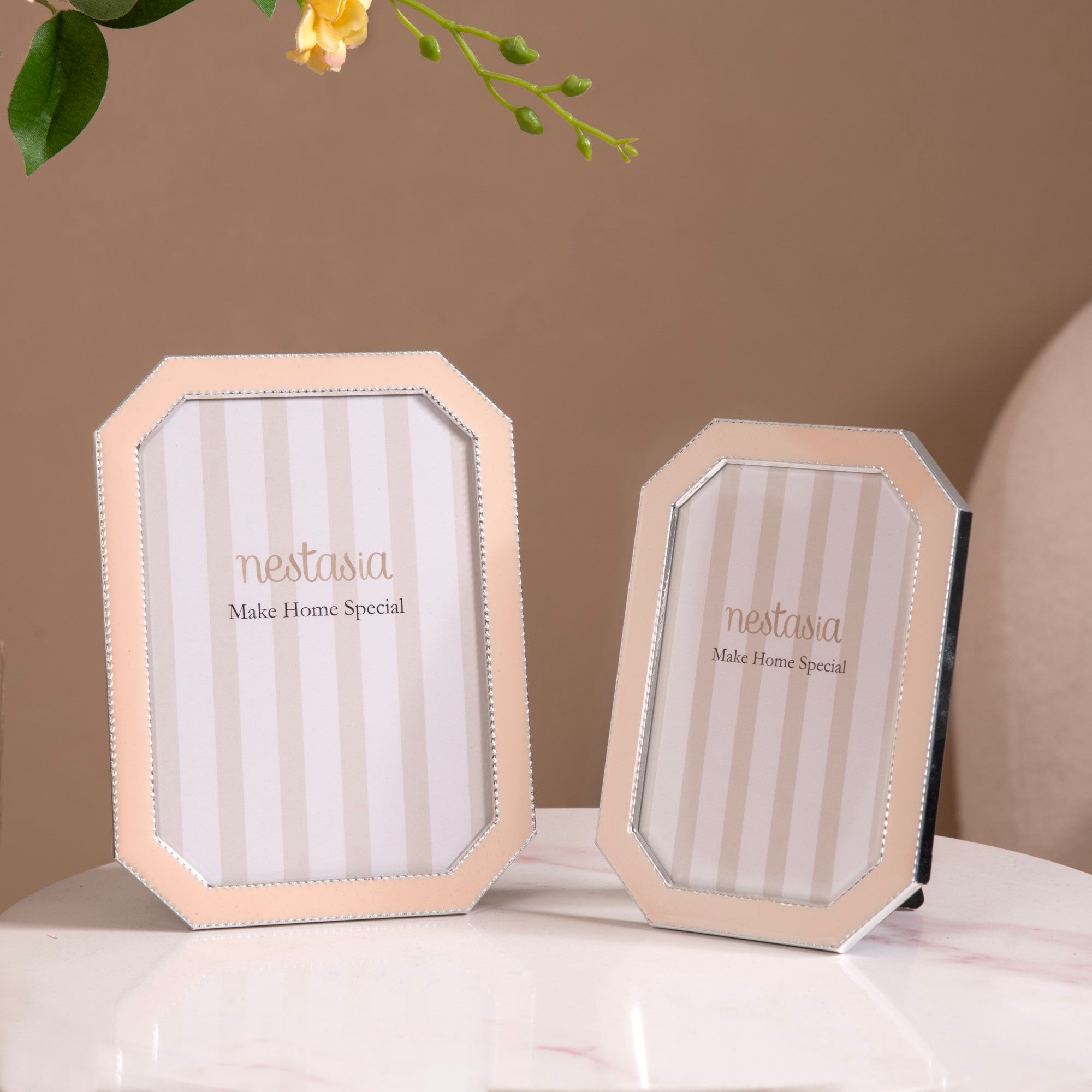 Silver Rim Photo Holder Frame Pink Set Of 2