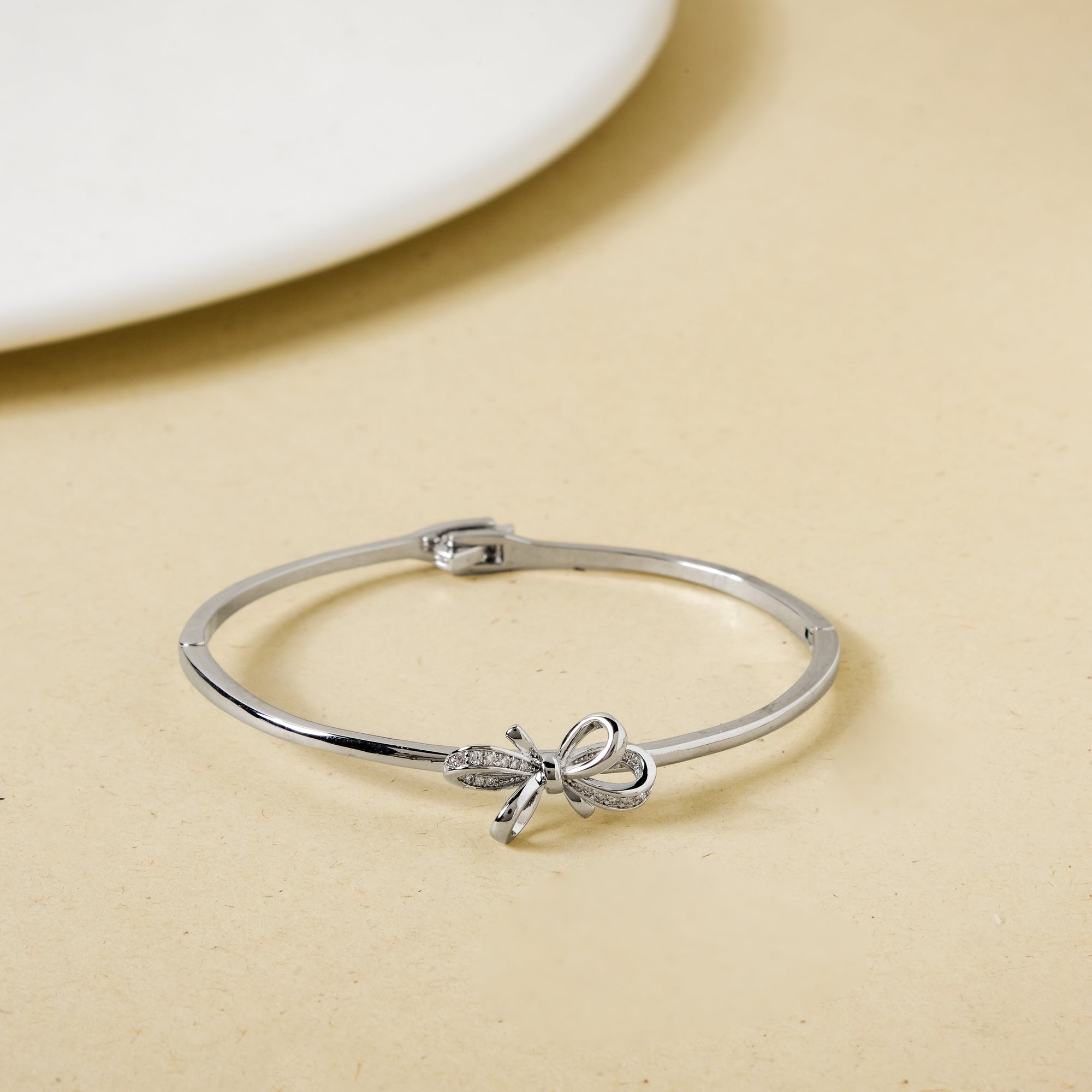 Add a little sparkle to your everyday look with this stylish silver bracelet, featuring a delicate bow charm on top. The charm bracelet comes with a secure clasp hook, making it easy to wear and remove. Its elegant yet playful design makes it perfect for both casual outings and party nights. The bow symbolises grace and adds a touch of charm to any outfit, making it a must-have silver bracelet for women who love versatile accessories.