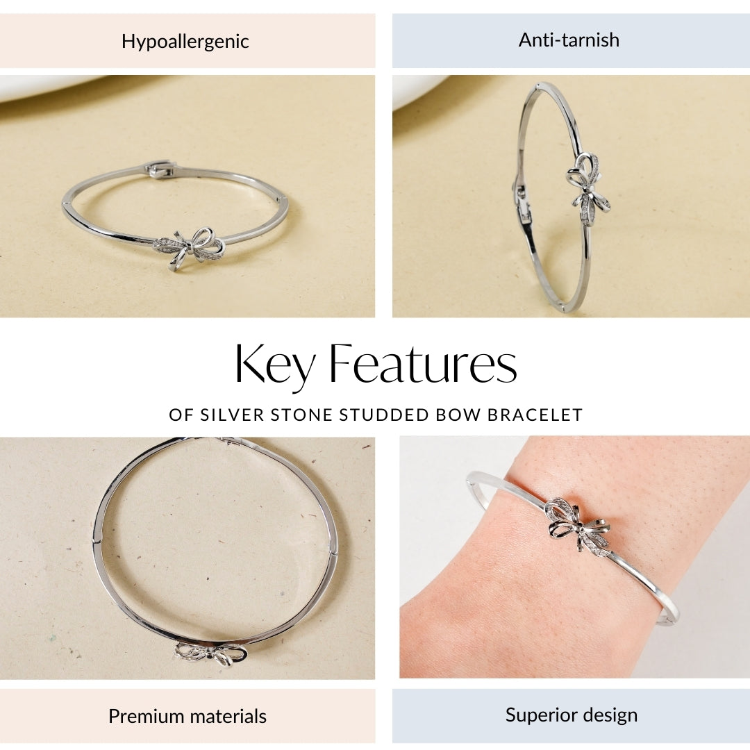 Silver Stone Studded Bow Bracelet