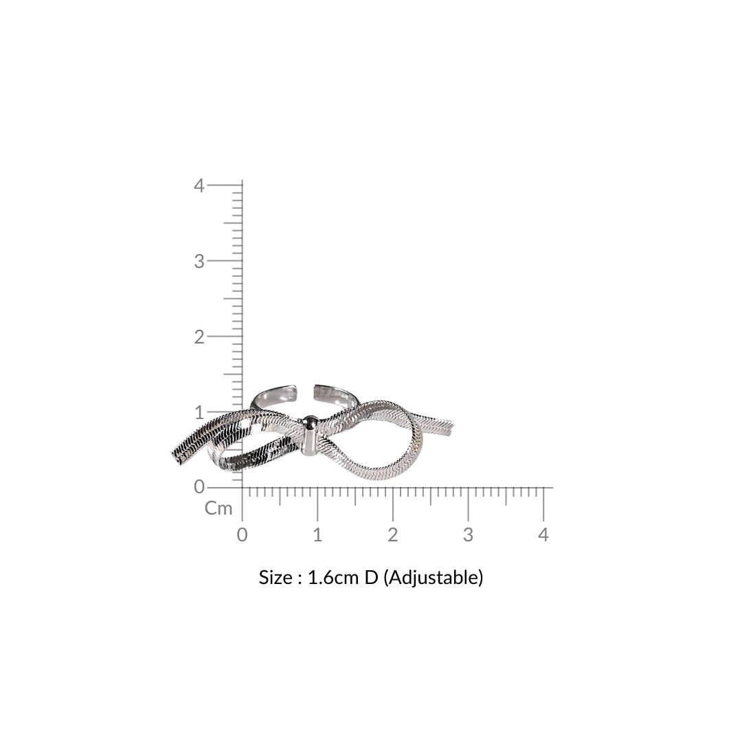 Not your typical bow, this one bends the rules—literally. This whimsical finger ring takes a classic motif and gives it a modern, fluid twist. Crafted in sleek silver, the abstract bow at its center isn’t stiff or structured; instead, it flows effortlessly, as if caught in a gentle breeze. Elegant yet playful, this ring is for those who love a touch of sophistication with a hint of spontaneity. Wear it solo for a subtle statement or stack it up to mix classic charm with modern edge.
