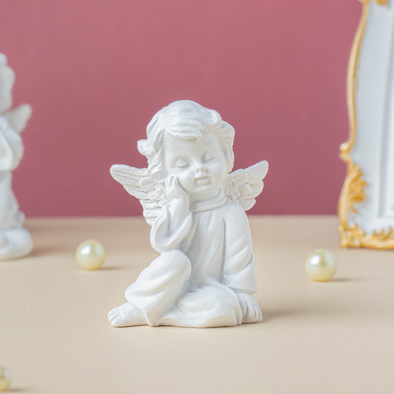 The angel statue showpiece can be easily cleaned using a clean and soft kitchen cloth or paper towel to wipe off the dust. Do not use harsh chemicals or soap as they might ruin the texture of the decor showpiece. However, the decor showpiece doesn't even need to be cleaned often.
