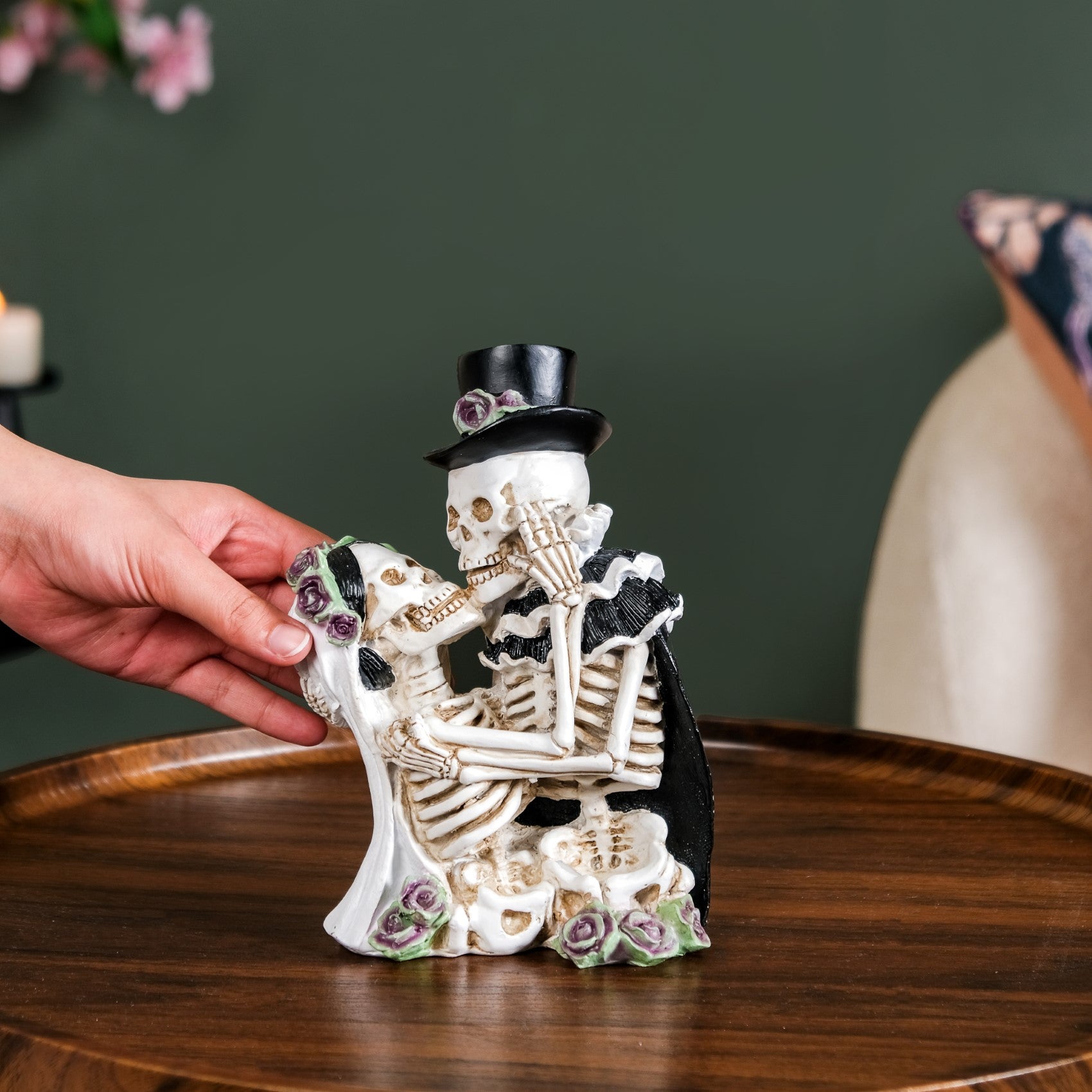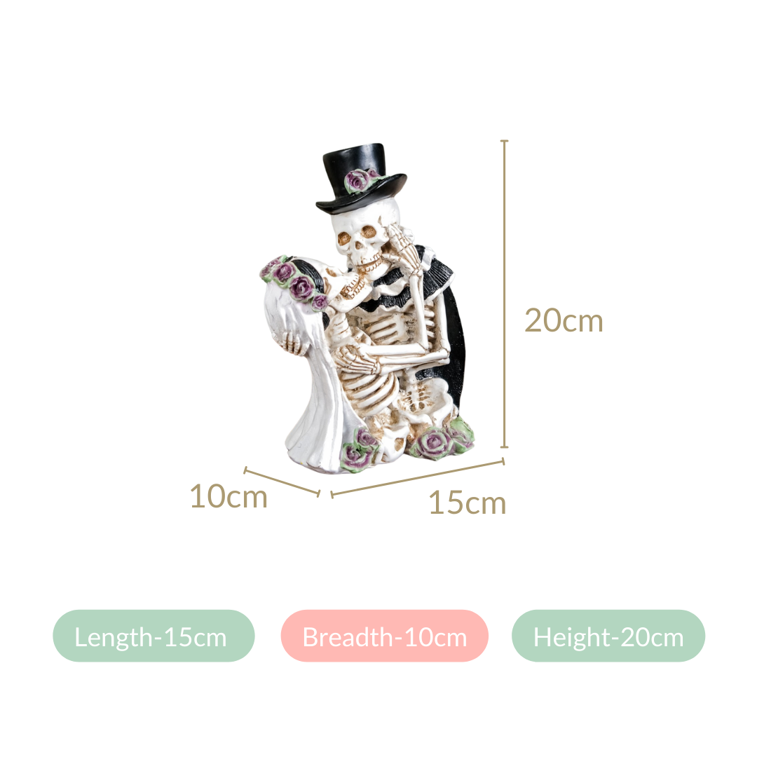This showpiece symbolizes everlasting love and commitment, captured through the lens of gothic romance. The skeletal figures represent the idea that true love transcends life and death, making it a perfect emblem of enduring affection and unity.