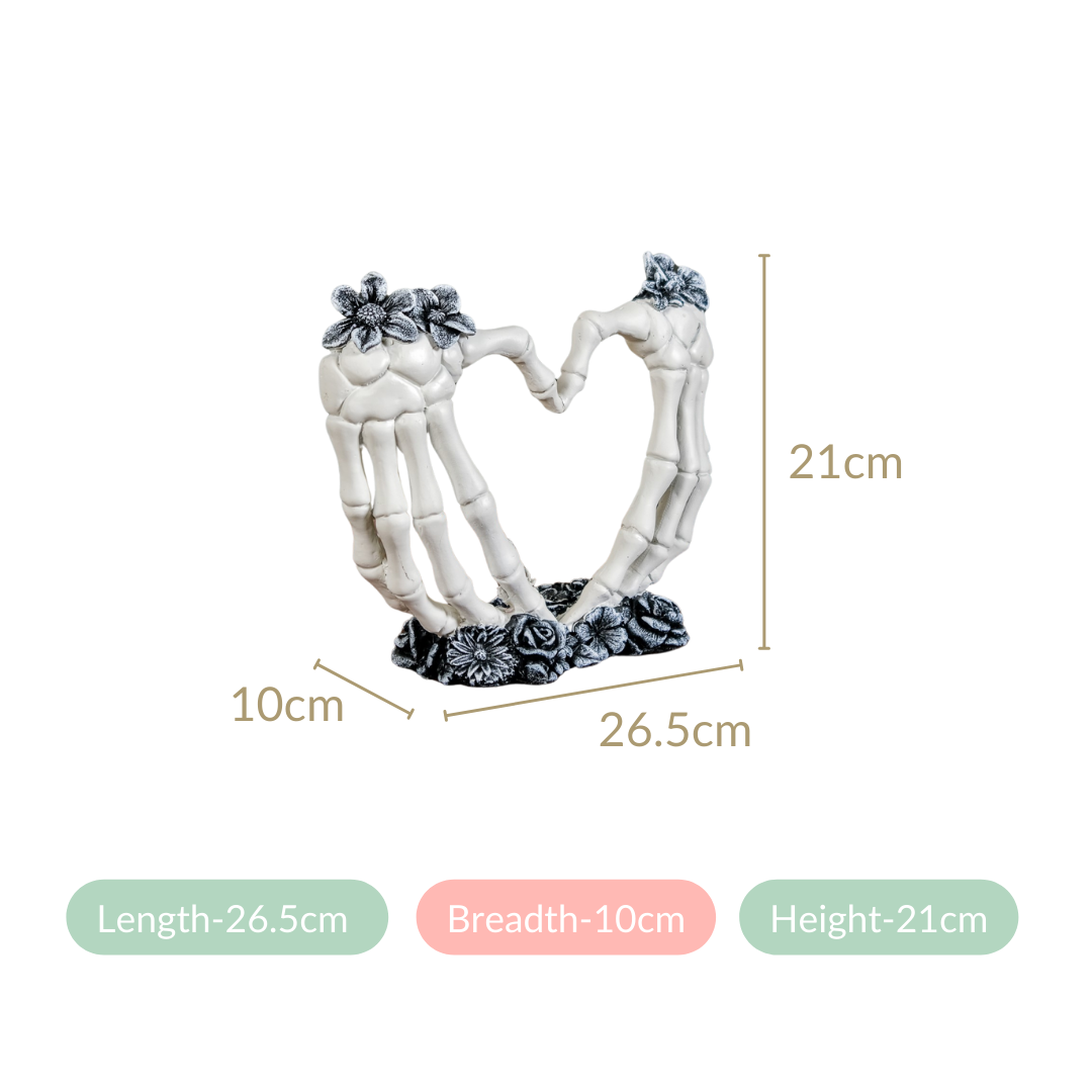 How does the design of the Skeleton Love Hand Decor Showpiece enhance a room's ambiance?