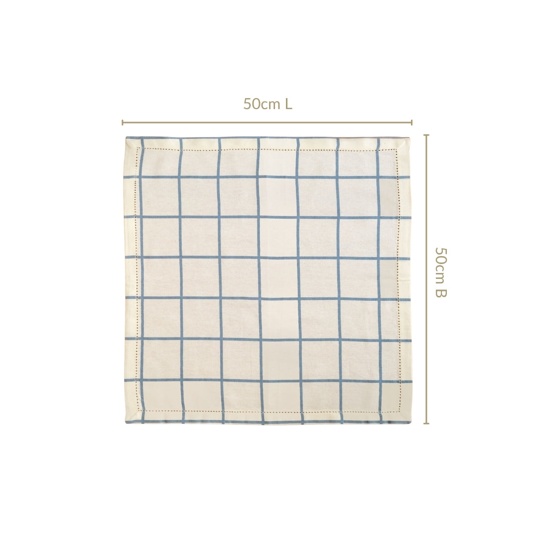 Design: Meet the perfect everyday accent for your table linen. This set of four table napkins is made with premium cotton and showcases an elegant windowpane grid design in a chic slate blue colour. The subtle acrylic polymer layer imparts a durable yet soft feel to the fabric. Each napkin is finished with sturdy edges for daily use, adding a polished touch to your dining setup.