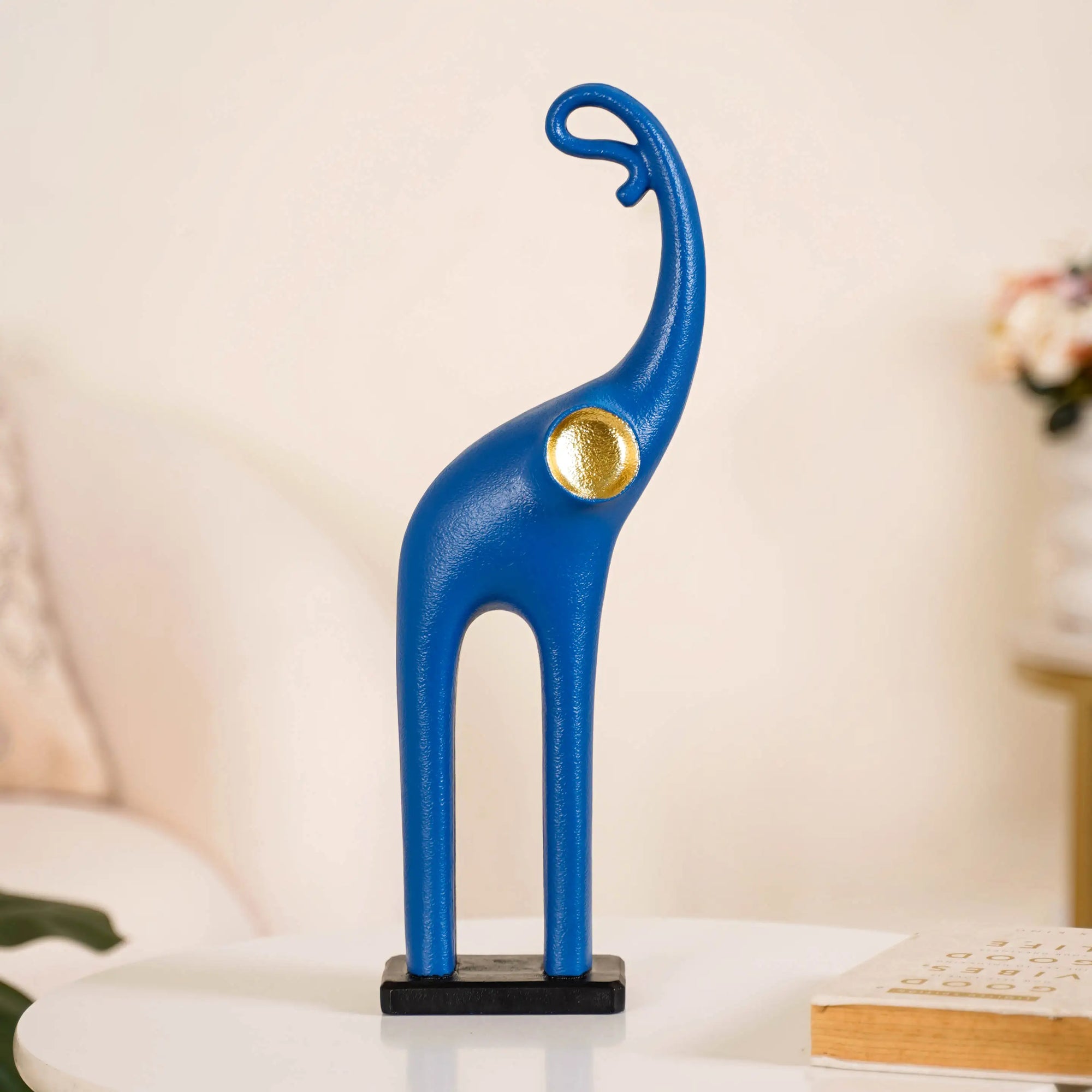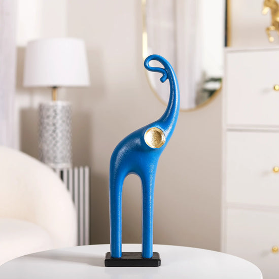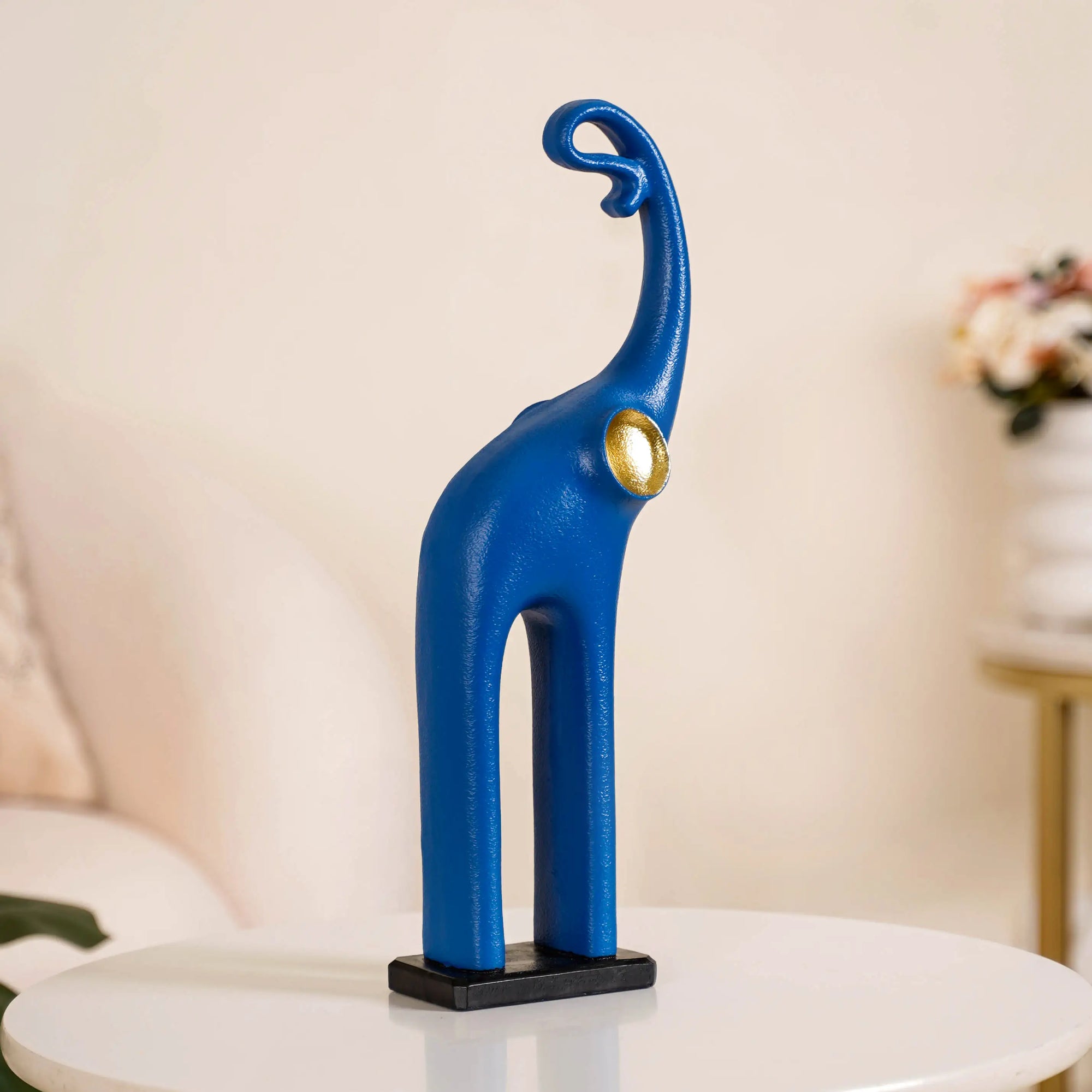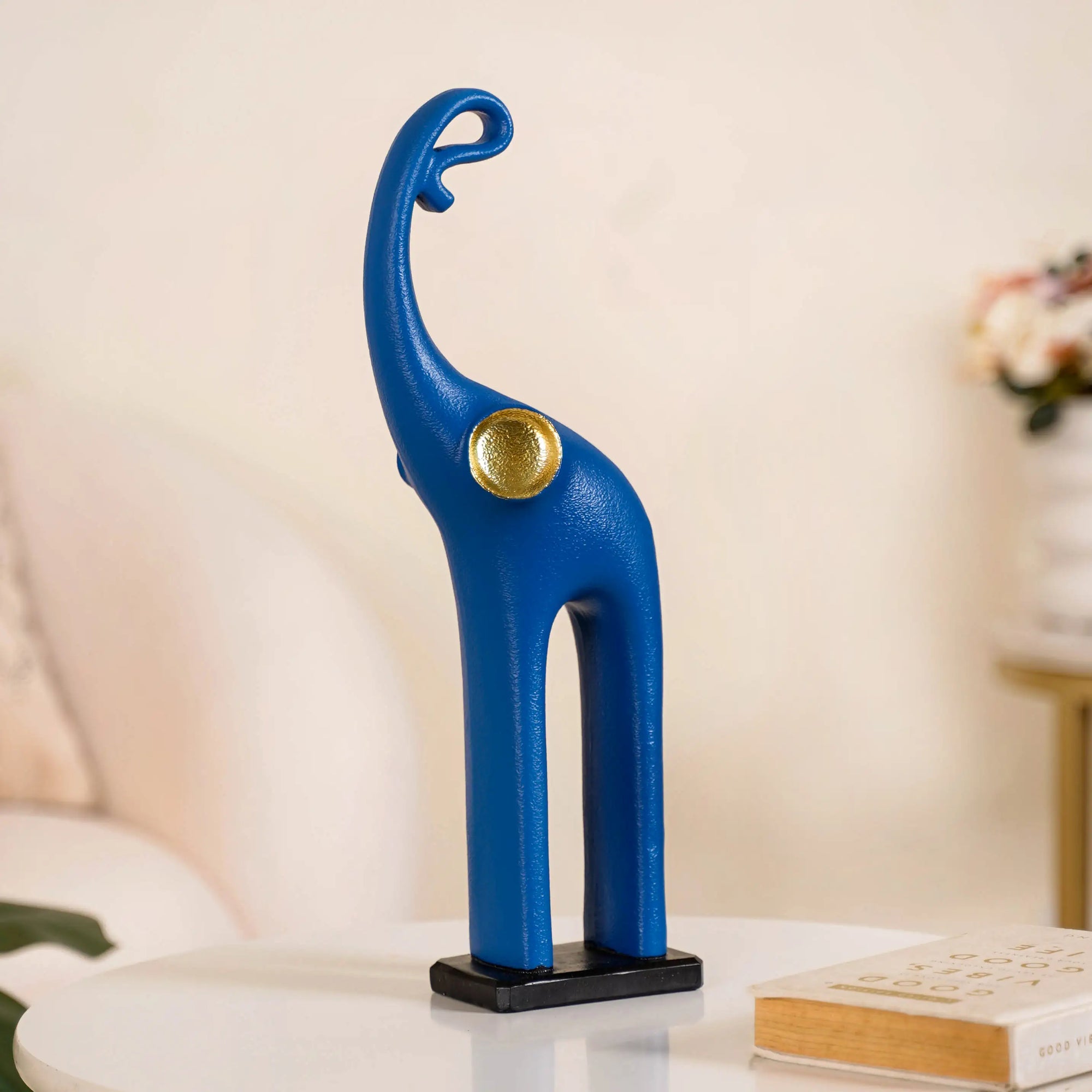 The elephant showpiece for decor stands out in home décor because of its distinctive fusion of contemporary aesthetics and symbolic elements. Crafted with meticulous attention to detail, this masterpiece features a stunning blue colour that symbolizes tranquillity and serenity, creating an immediate visual impact. The raised trunk of the elephant, representing good fortune and positivity, adds an auspicious touch to the decor. Its sleek, simple form perfectly portrays the grandeur of the elephant, and its sturdy construction from premium resin gives it a sophisticated look.