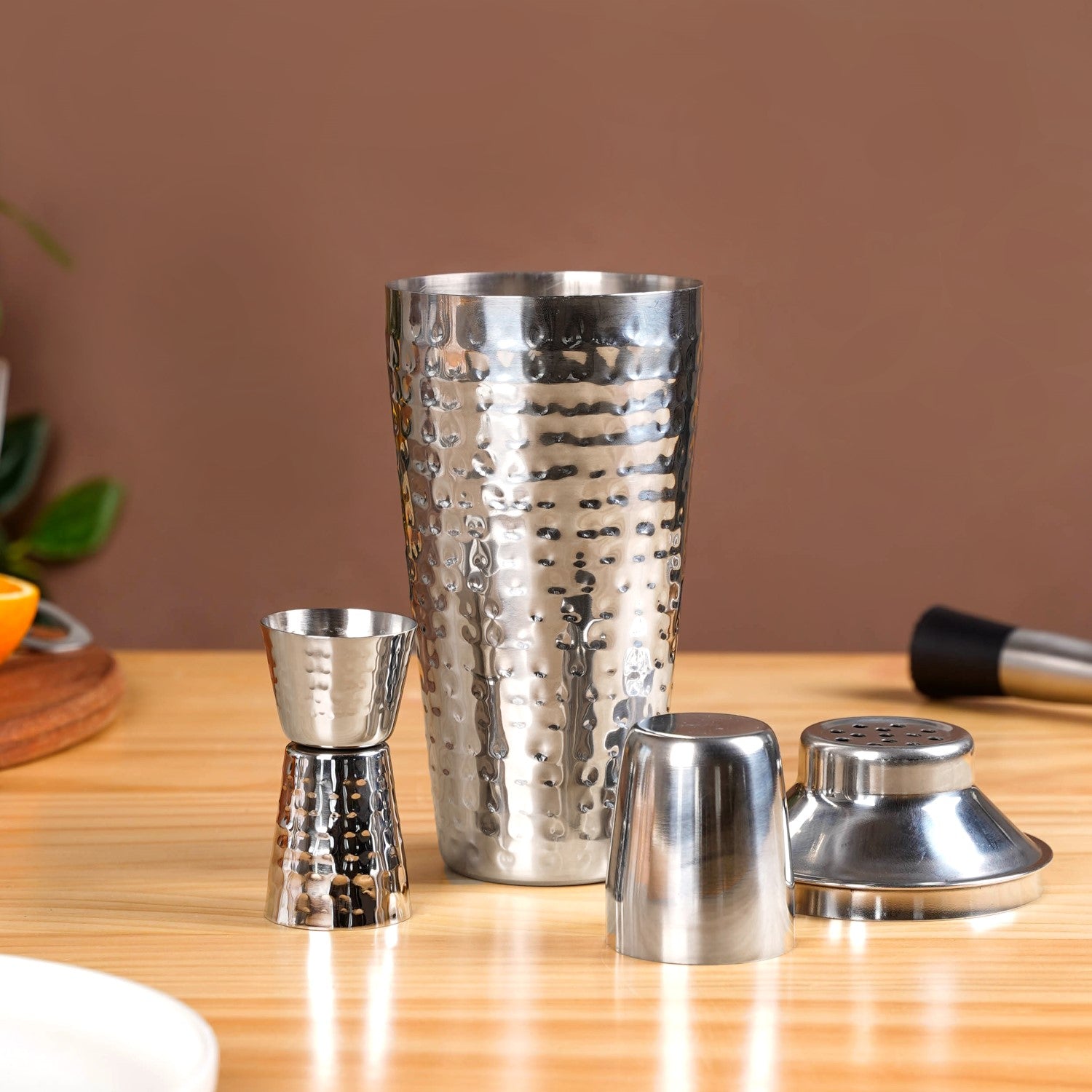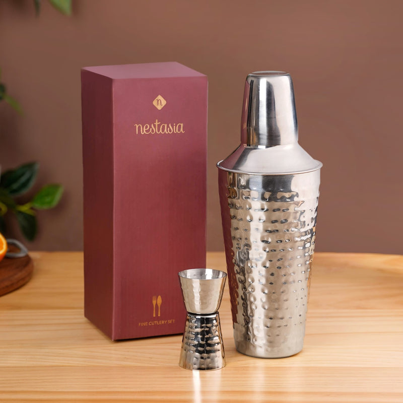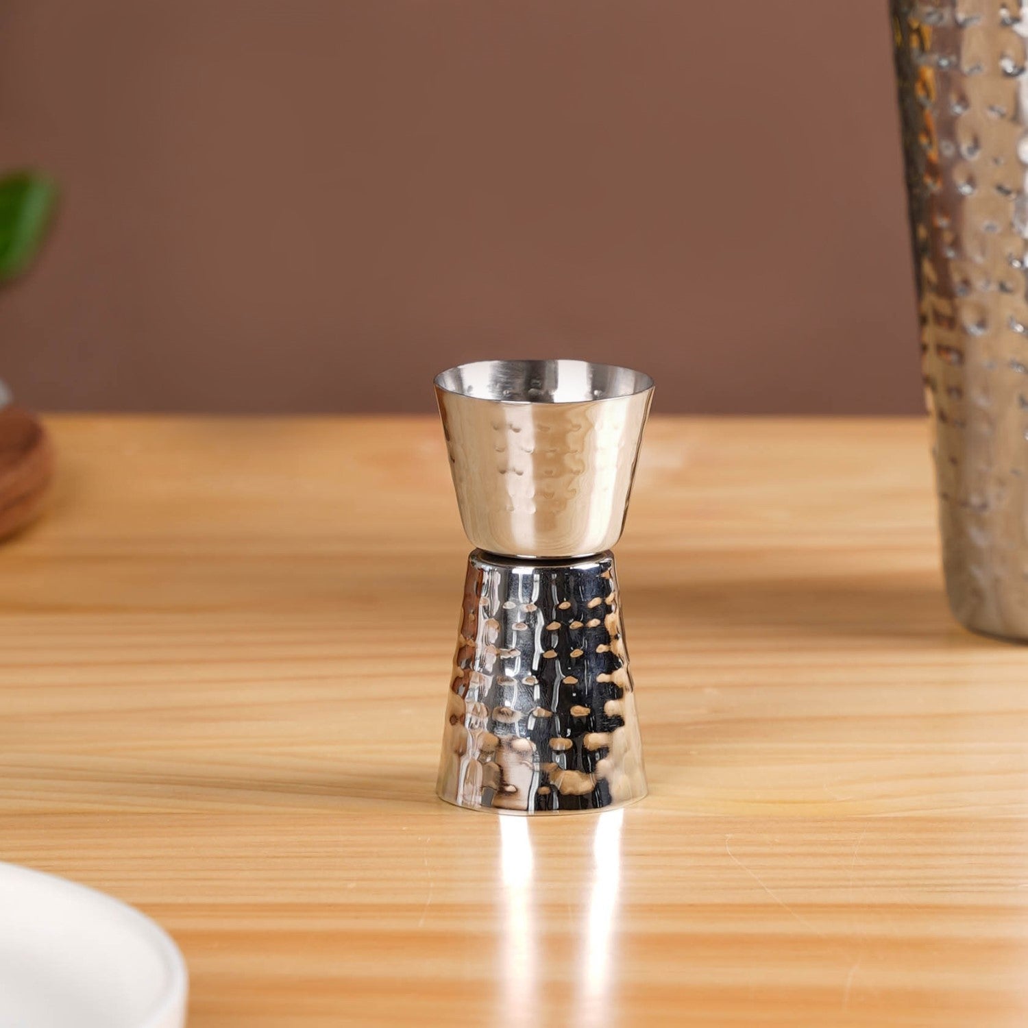Design: With a textured hammered surface and a high-sheen finish, this cocktail shaker and peg measurer set combines elegance and functionality. The shaker’s design is crafted to deliver both grip and style, making it a stunning addition to any bar setup.