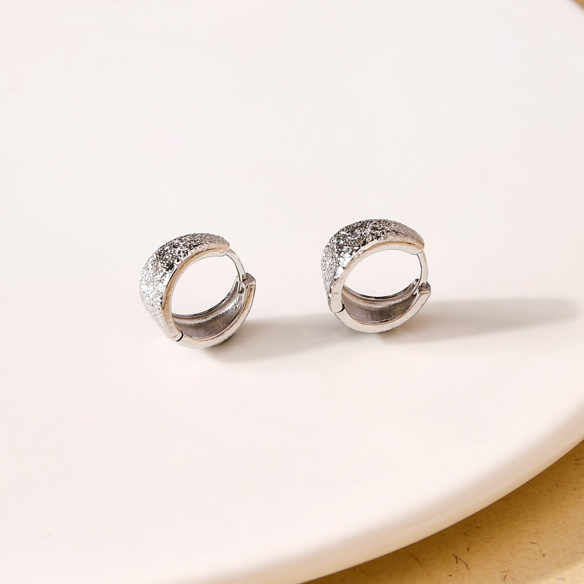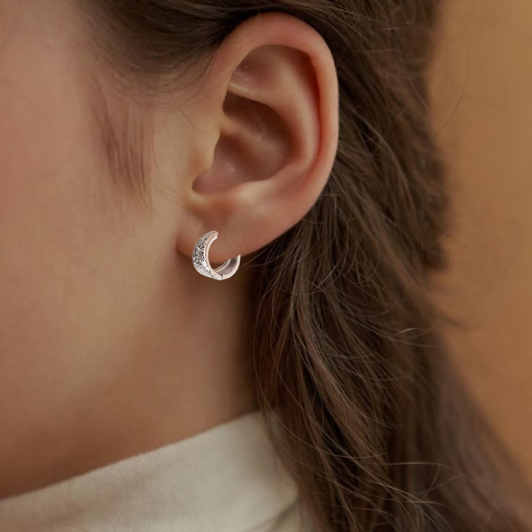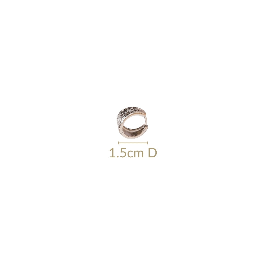 Add an elegant touch to any outfit with the silver-plated small hoop earrings, featuring a unique textured finish. Designed with a flexible hinge, they offer ease of use, ensuring effortless wear and removal. Their lightweight yet durable construction makes them perfect for daily wear or special occasions. The versatile design complements a wide range of styles, making them an essential accessory for anyone looking to add a subtle, sophisticated flair to their look. A perfect companion for those who appreciate both comfort and style!