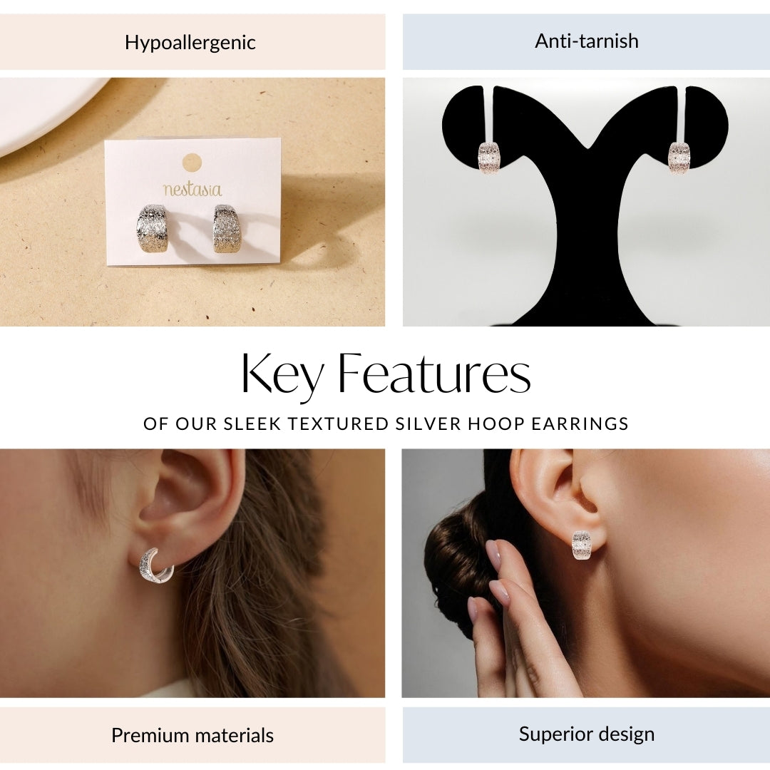 Sleek Textured Silver Hoop Earrings