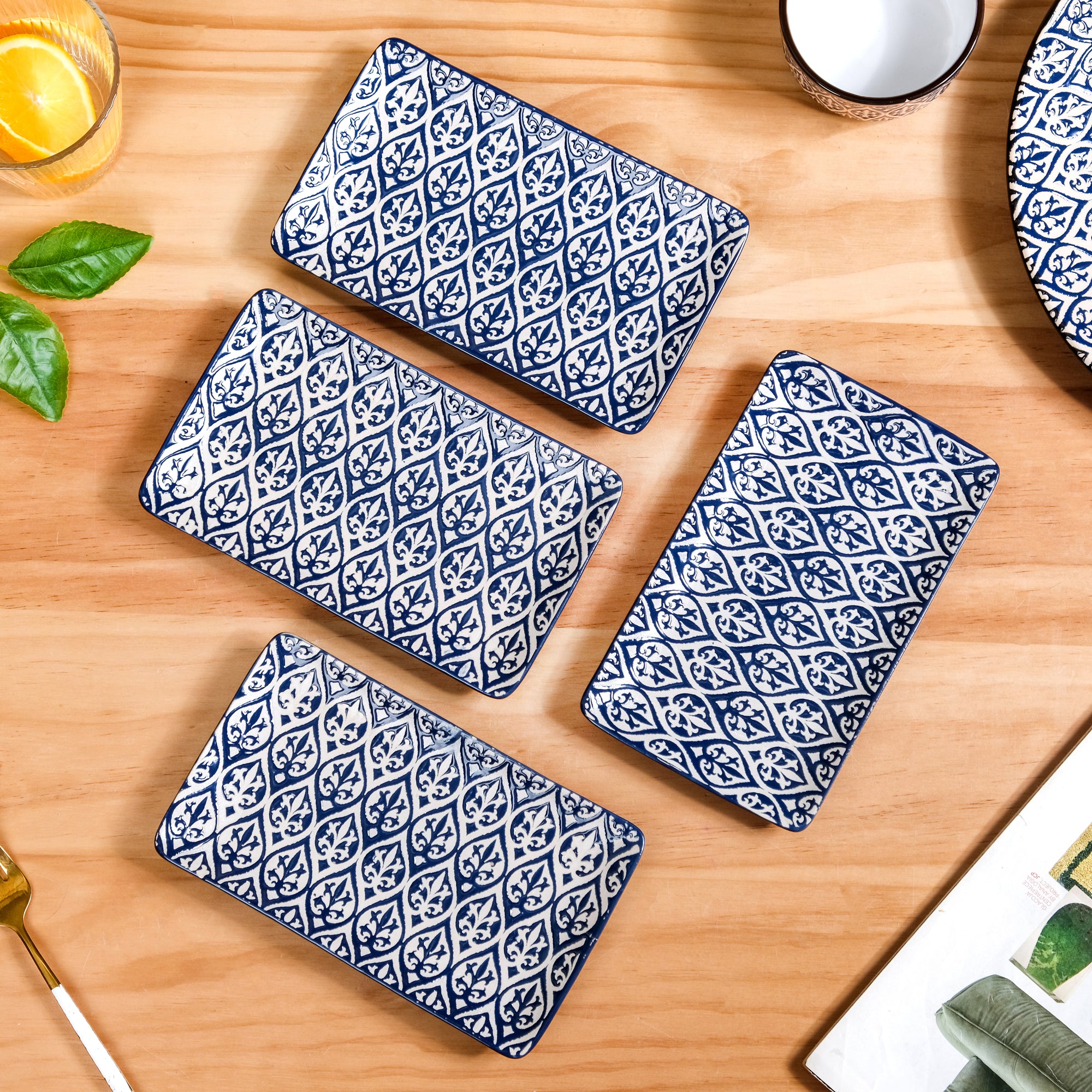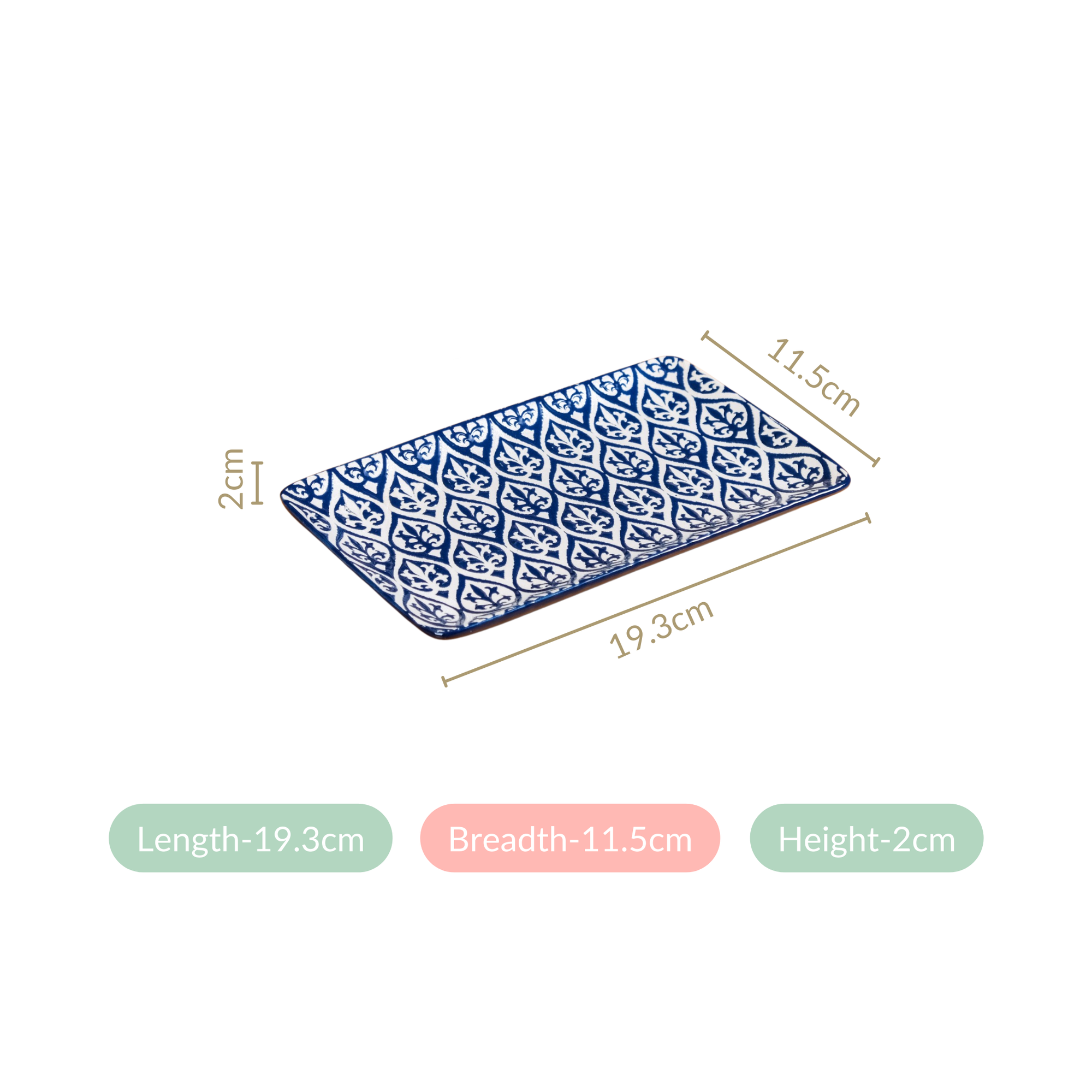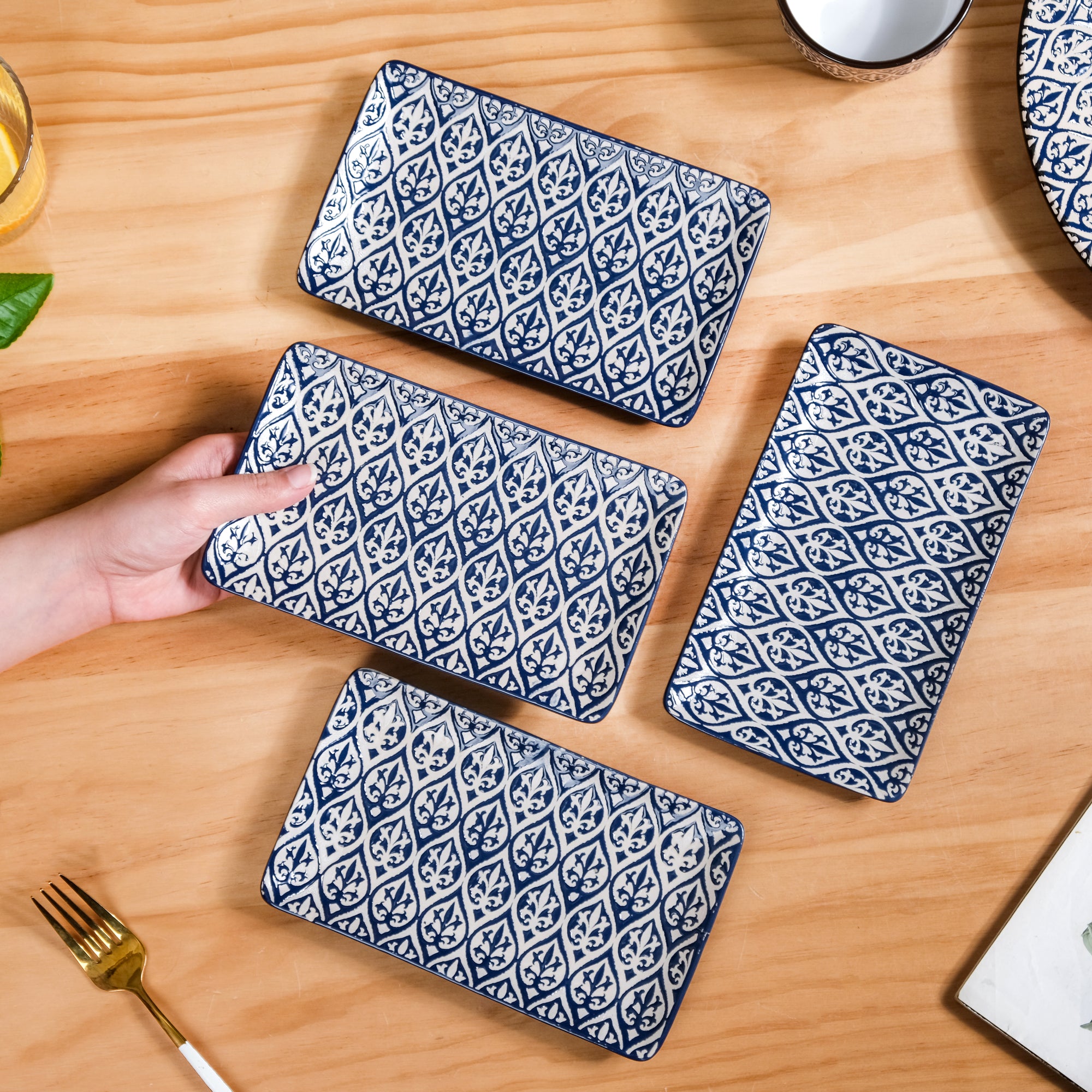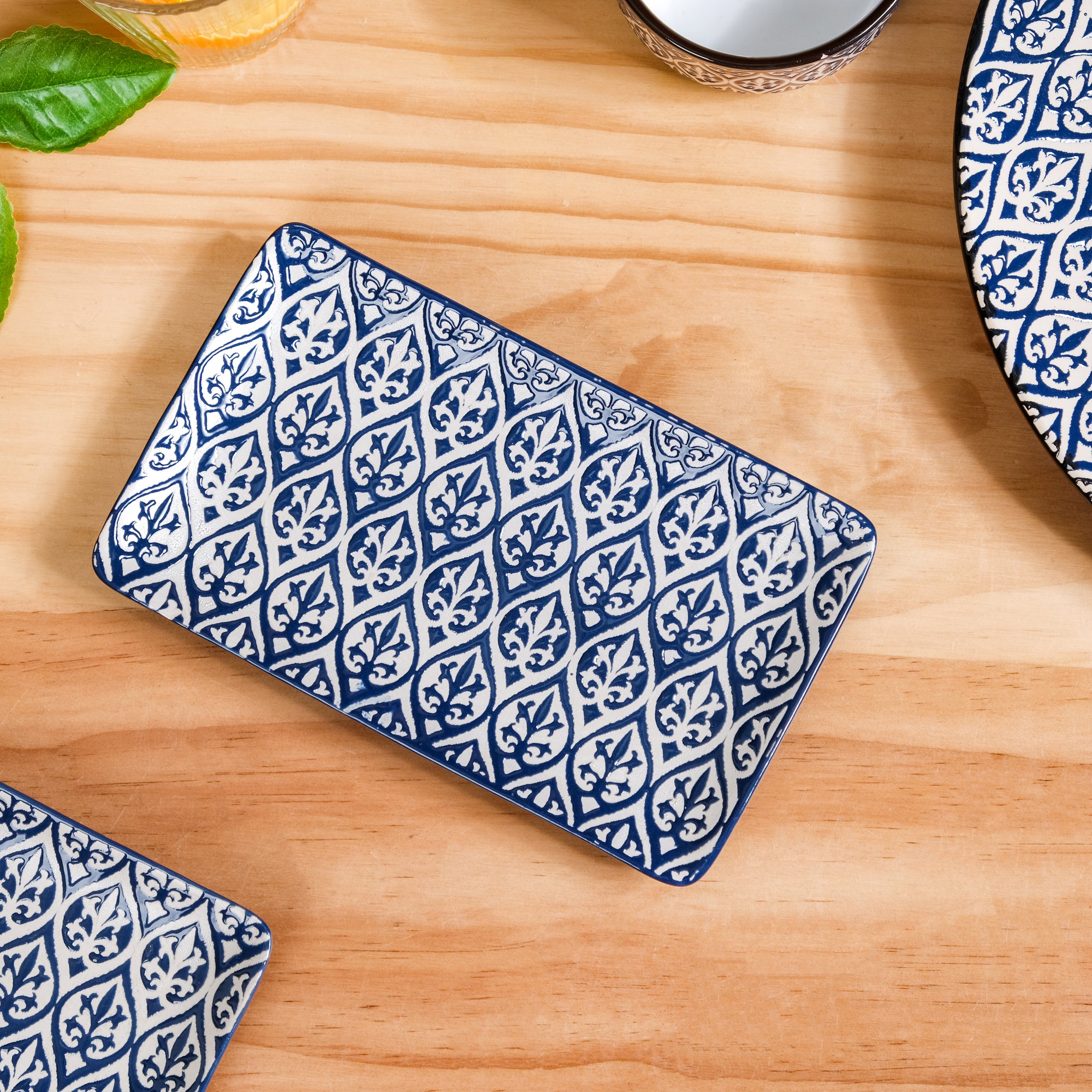 Design: Designed with an exquisite Victorian baroque pattern, these rectangular ceramic platters blend white and navy hues to create a look that's both classic and chic. The rectangular shape not only adds a touch of classic charm but also provides ample space for presenting your favourite dishes in style.