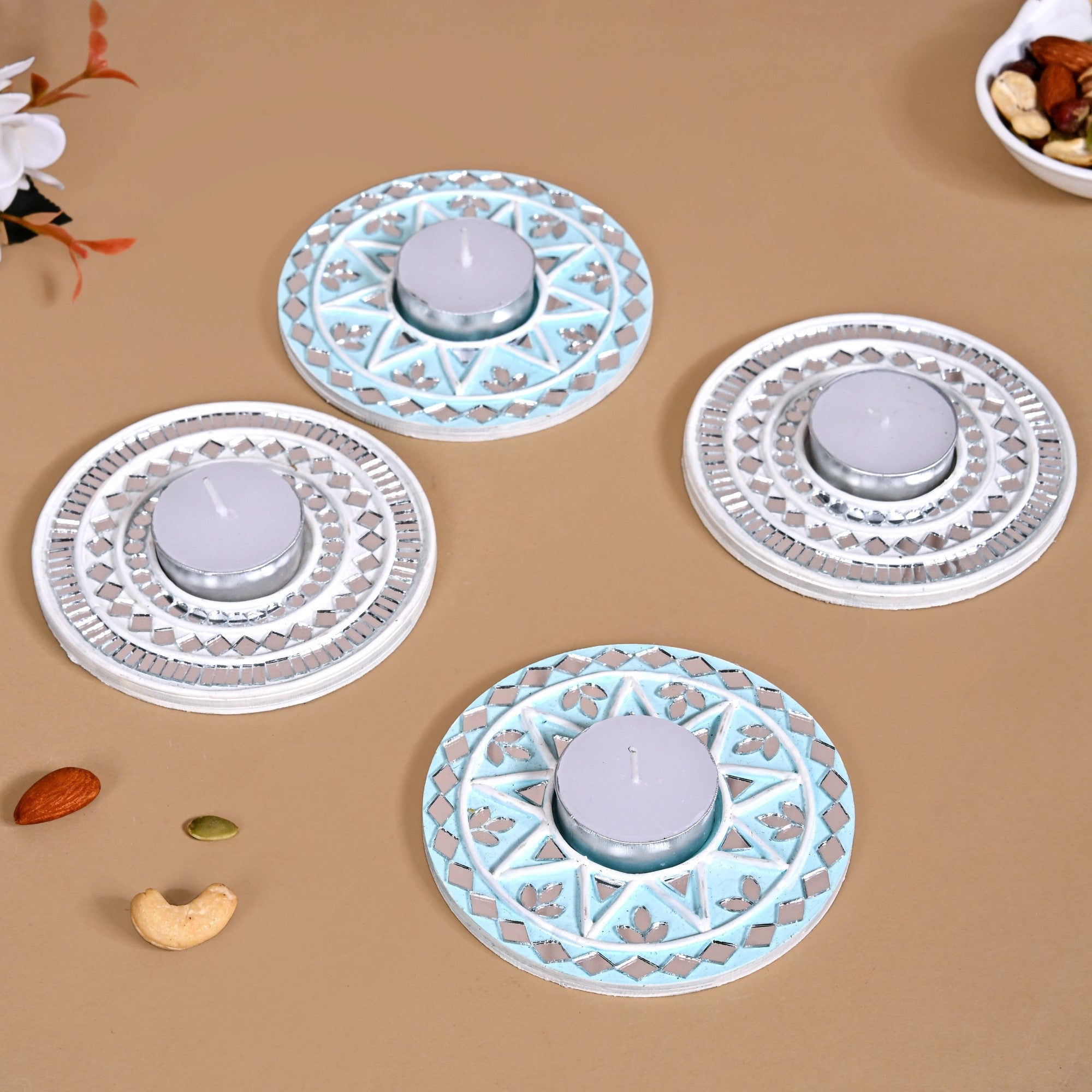 Minimalistic Tealight Candle Holder With Lippan Art Set Of 4 |