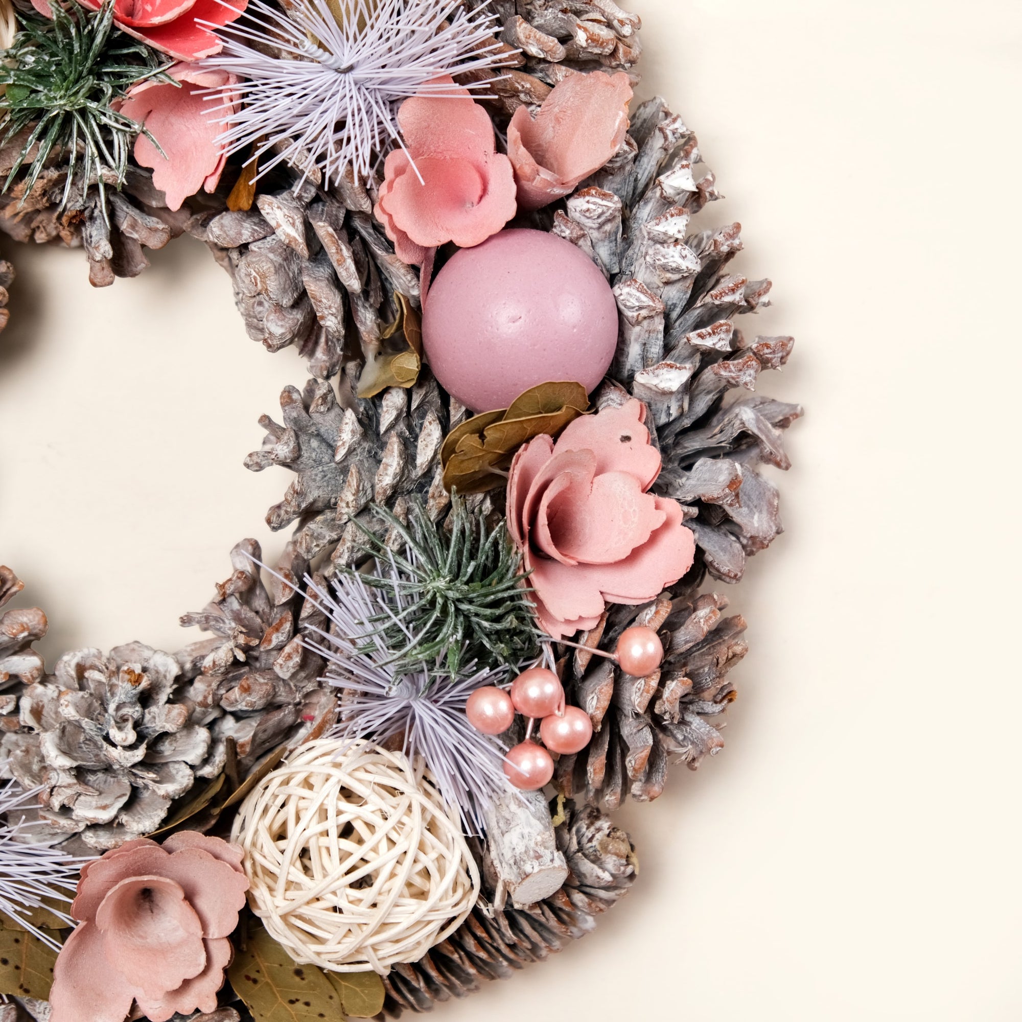 Material: Dried pine cones, organic rattan balls, wood, dried leaves, PVC