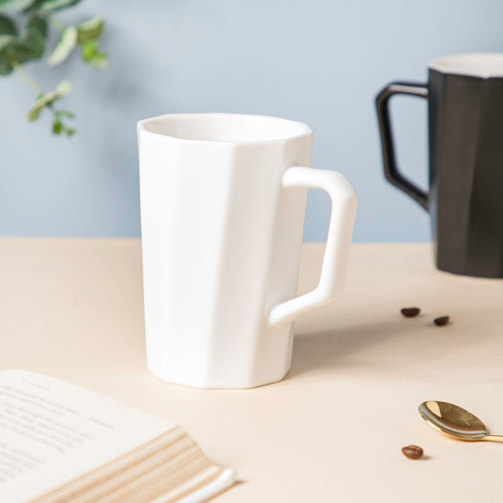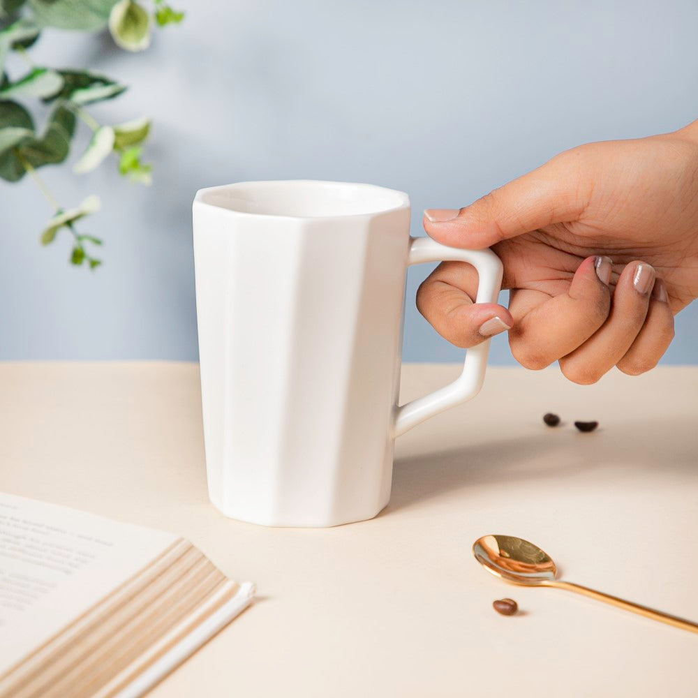 Dive into the aromatic scent of coffee when poured in the pristine matt white mug which will usher in class and opulence to the coffee table. With a ribbed outer body and an eye-catching design, the cup steals a million hearts instantly. The stunning mug piece makes that coffee break a little more fun and enjoyable. Features: - High quality ceramic - Sleek finish - Non-toxic and environment friendly - Washable, reusable, and odorless - A perfect gift for any occasion Nestip: Place a succulent or a small plant in the tall cup to jazz up a work desk. Size: 7cm D x 11cm H With handle: 11cm L Capacity: 350ml Color: White Material: Ceramic Products included: 1 cup Style: ESP100T17