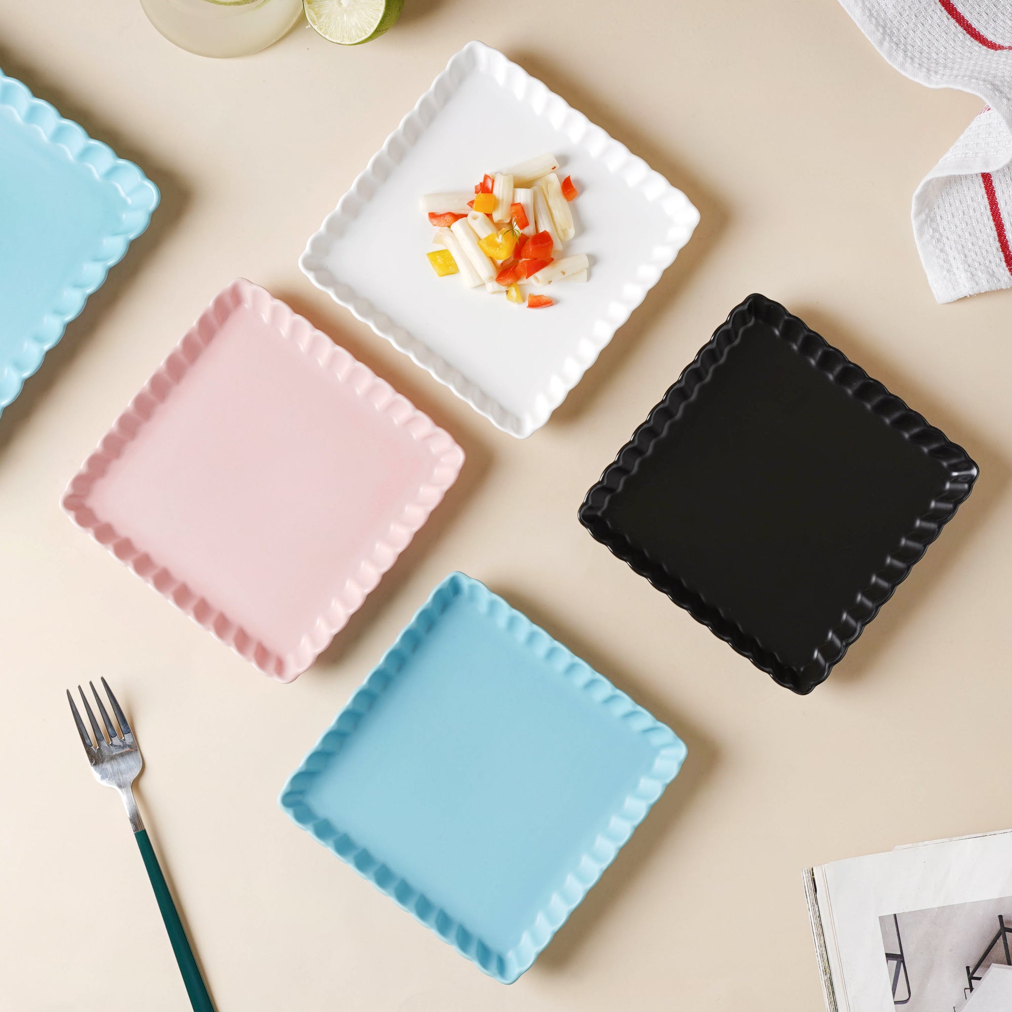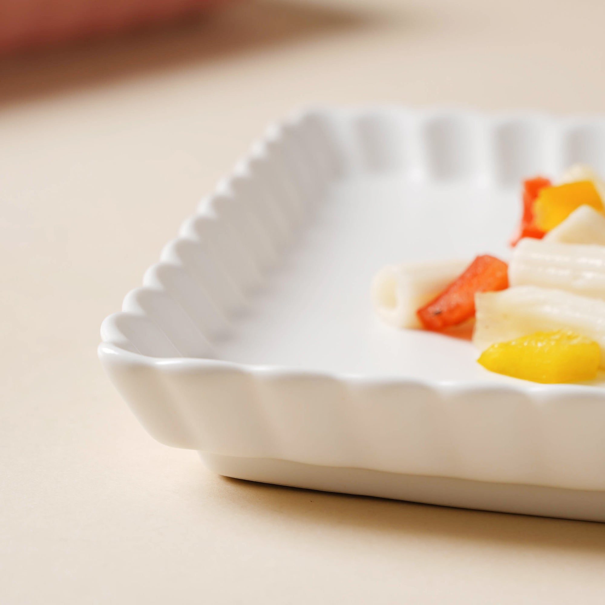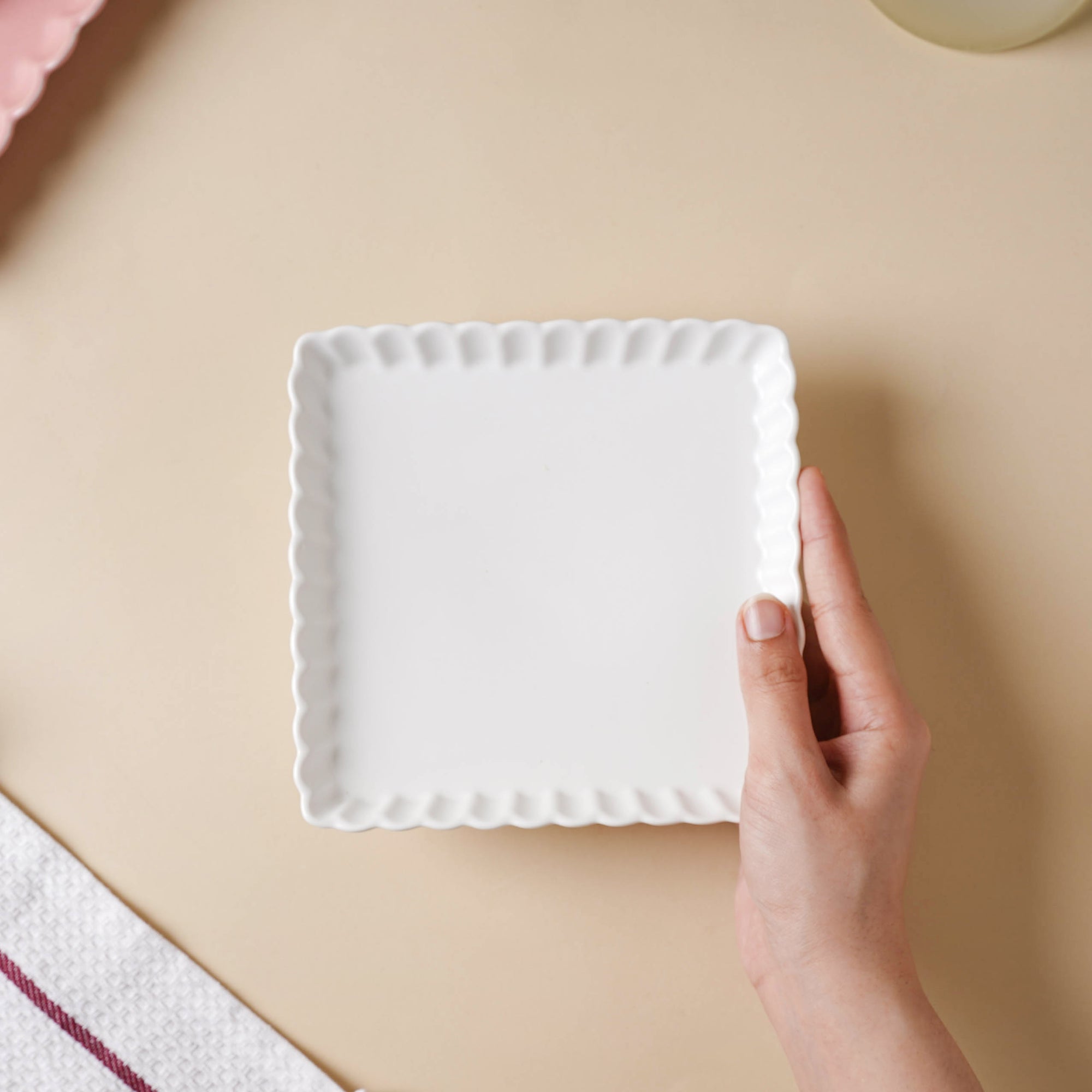 The useful and classic serving platter may be used to display dishes at home during any casual, formal, or special occasion. The square-shaped platter is made of ceramic and has a matte finish. The platter may be used to serve salad, appetizers, or any other savory items to guests.