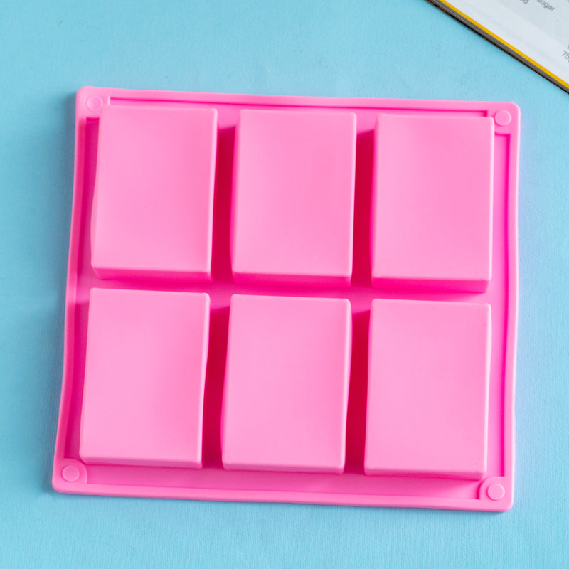 Soap mould tray made in silicon that has 6 soap cavities. Make classic soap bars of rectangle shape in different colours. The silicon soap moulds can also be used as chocolate moulds for making chocolate bars. The multiutility silicon mould is food grade quality and can be used for freezing and baking. The moulds are flexible enough to peel the product from the mould without breaking.