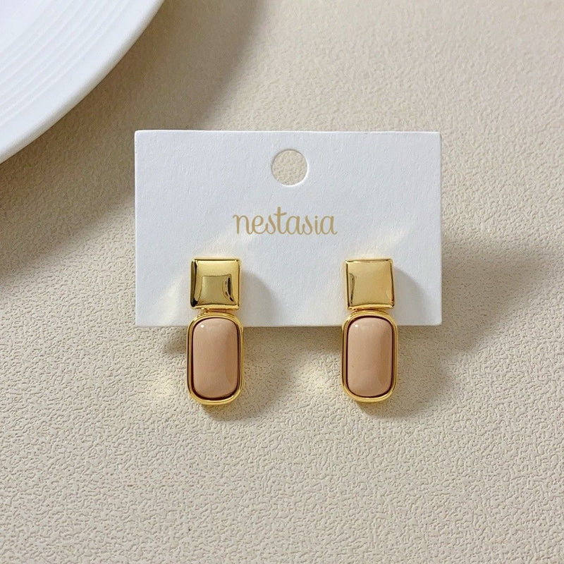 The dangling earrings draw inspiration from the beauty of minimalism - where less is truly more! The simplicity of the square shape combined with the soft, neutral tone of the stone creates an understated yet impactful piece that elevates any look without overwhelming it. It's the perfect fusion of form and function, crafted for those who appreciate elegance in its purest form.
