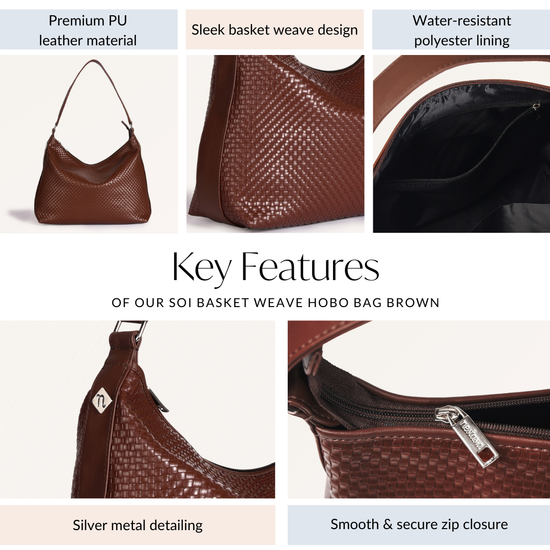Inspiration: "Soi," meaning "self" in French, perfectly captures the essence of this handbag—a celebration of personal style and expression. The brown hue adds warmth and versatility, making it a perfect choice for everyday wear.